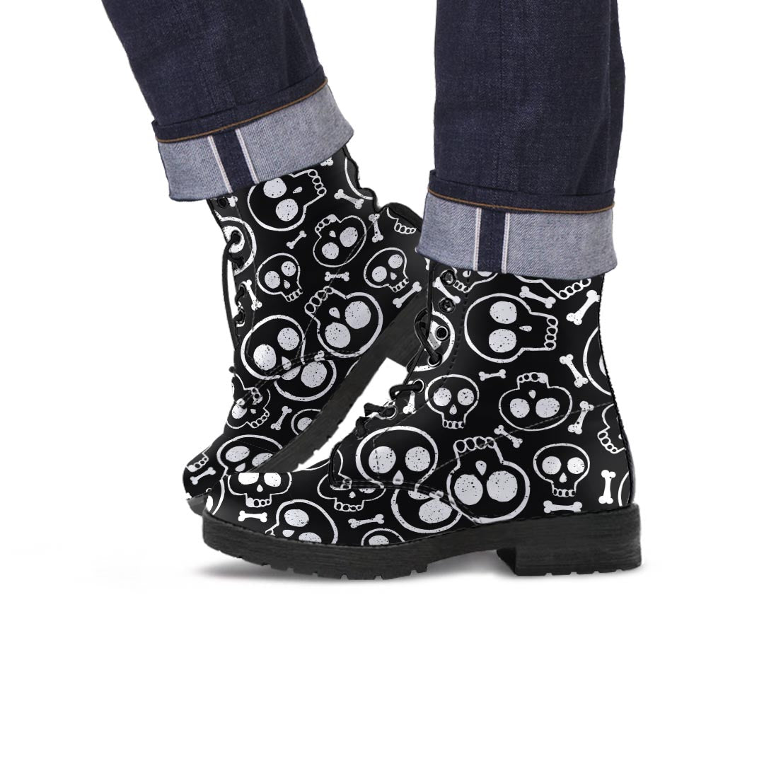 Black Cartoon Skull Men's Boots
