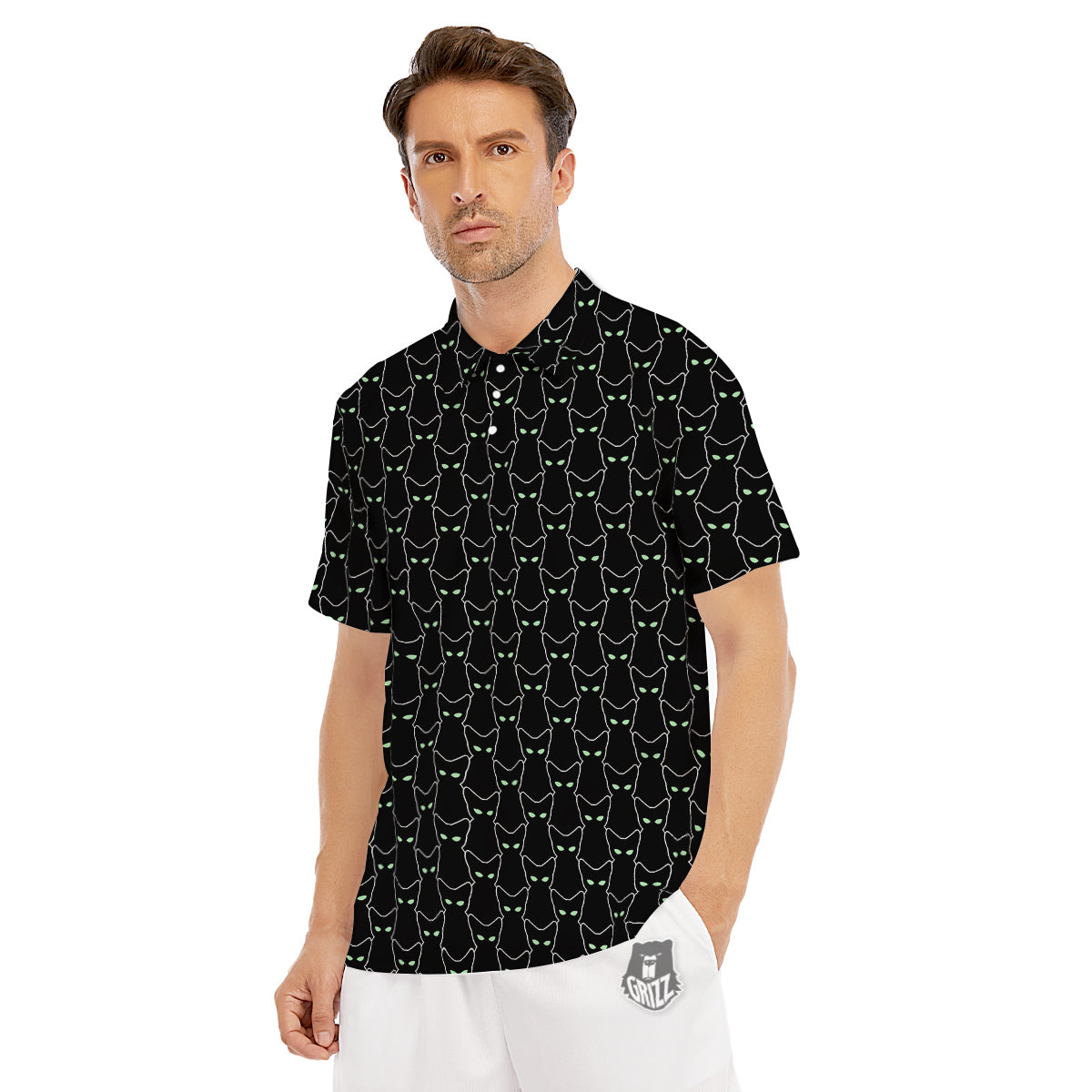 Black Cat Alien Print Pattern Men's Golf Shirts