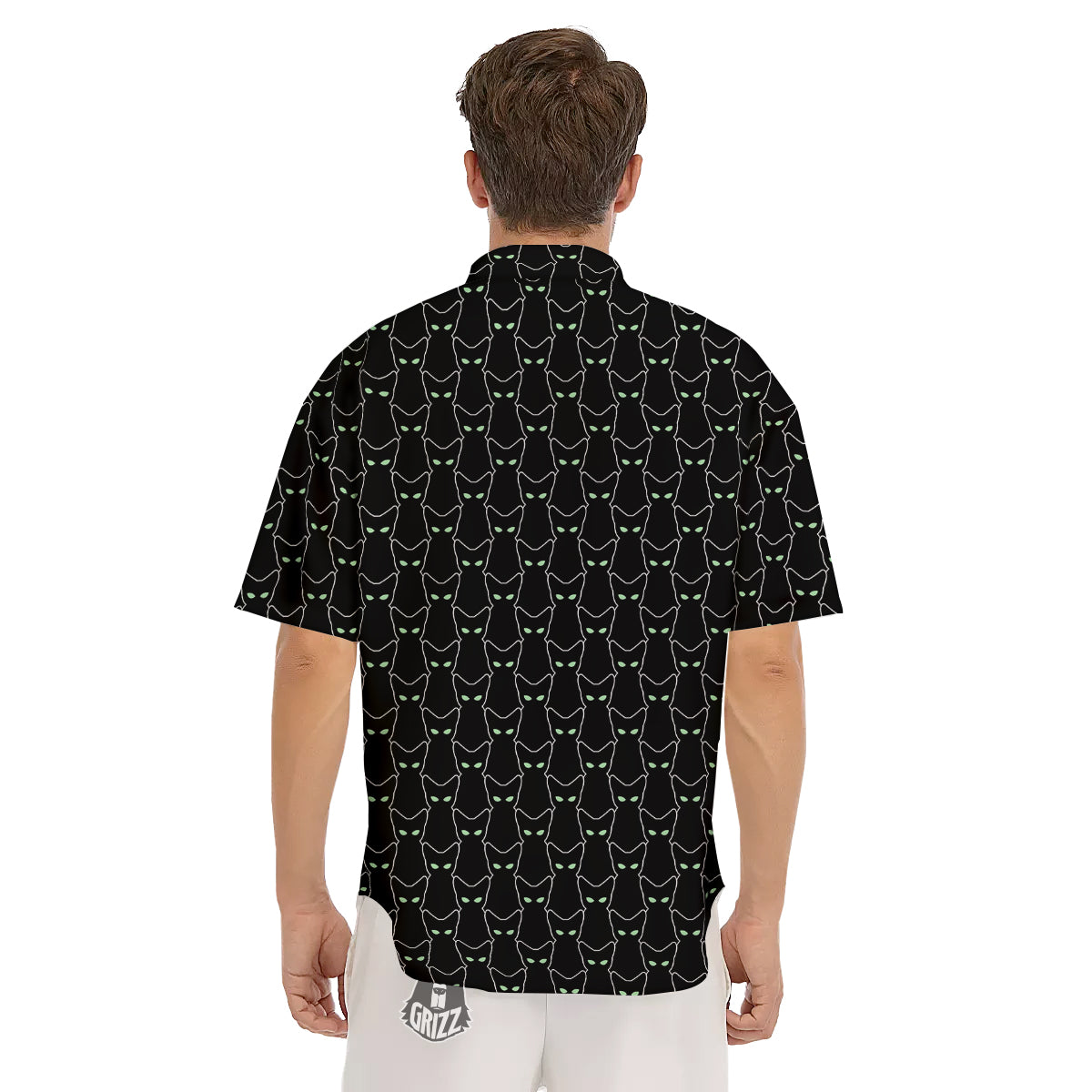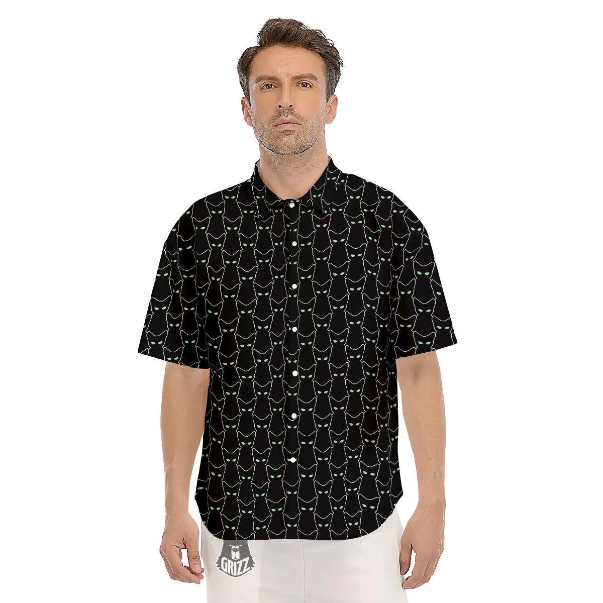 Black Cat Alien Print Pattern Men's Short Sleeve Shirts
