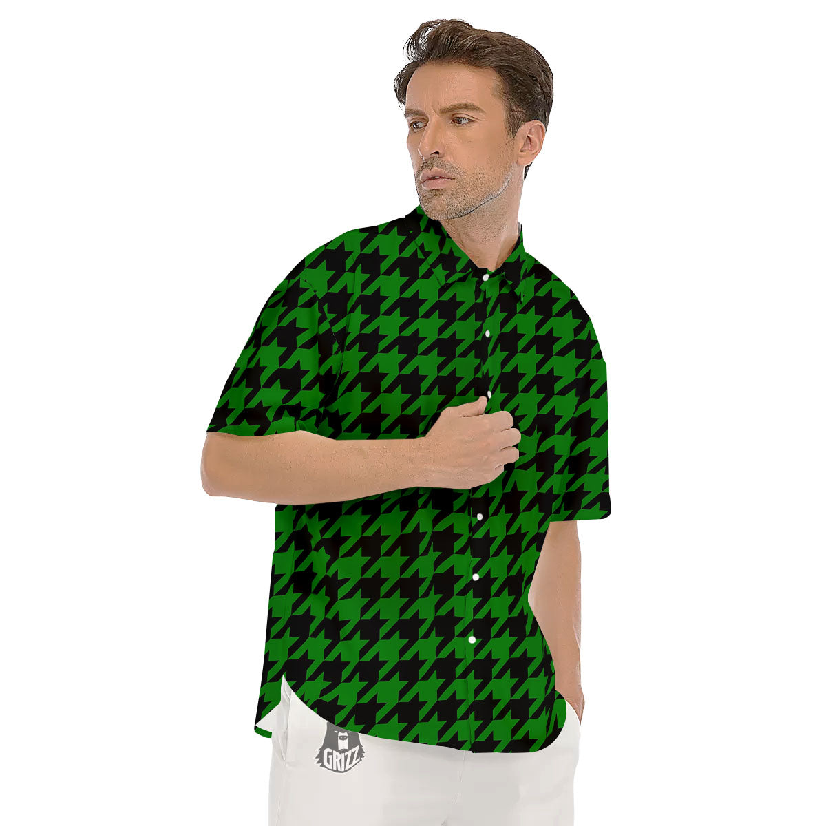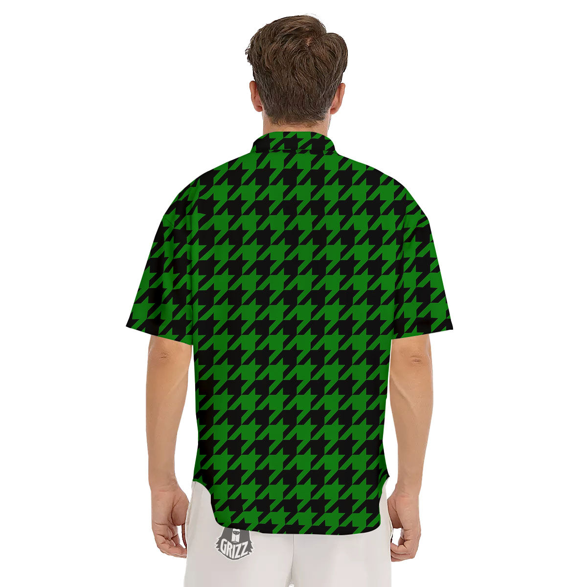 Black Green Jungle Houndstooth Print Men's Short Sleeve Shirts