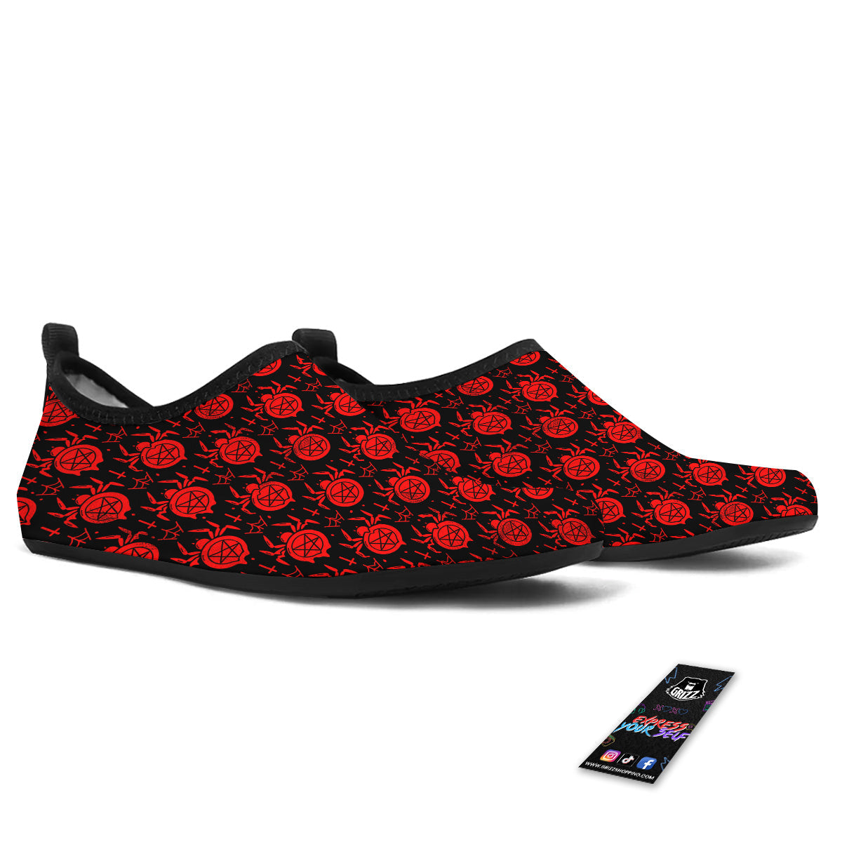 Black Red Spider Pentagram Print Pattern Water Shoes