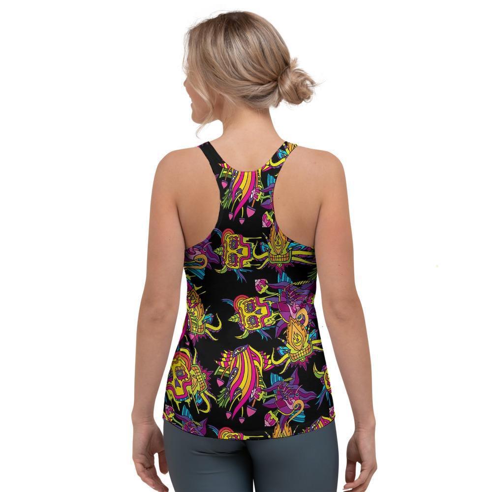 Black Skull Trippy Psychedelic Women's Racerback Tank Top
