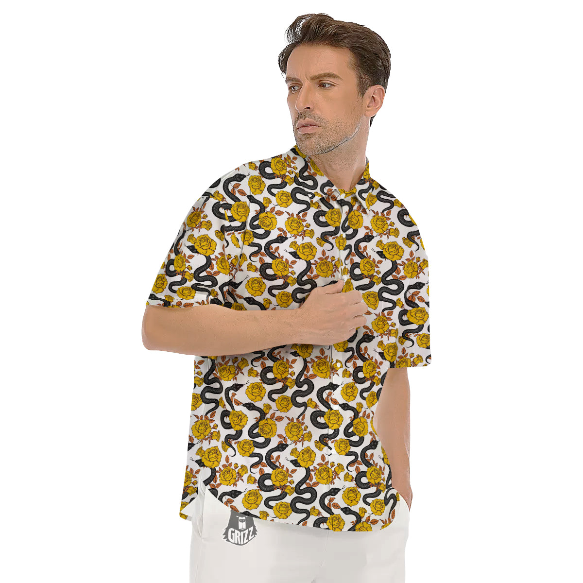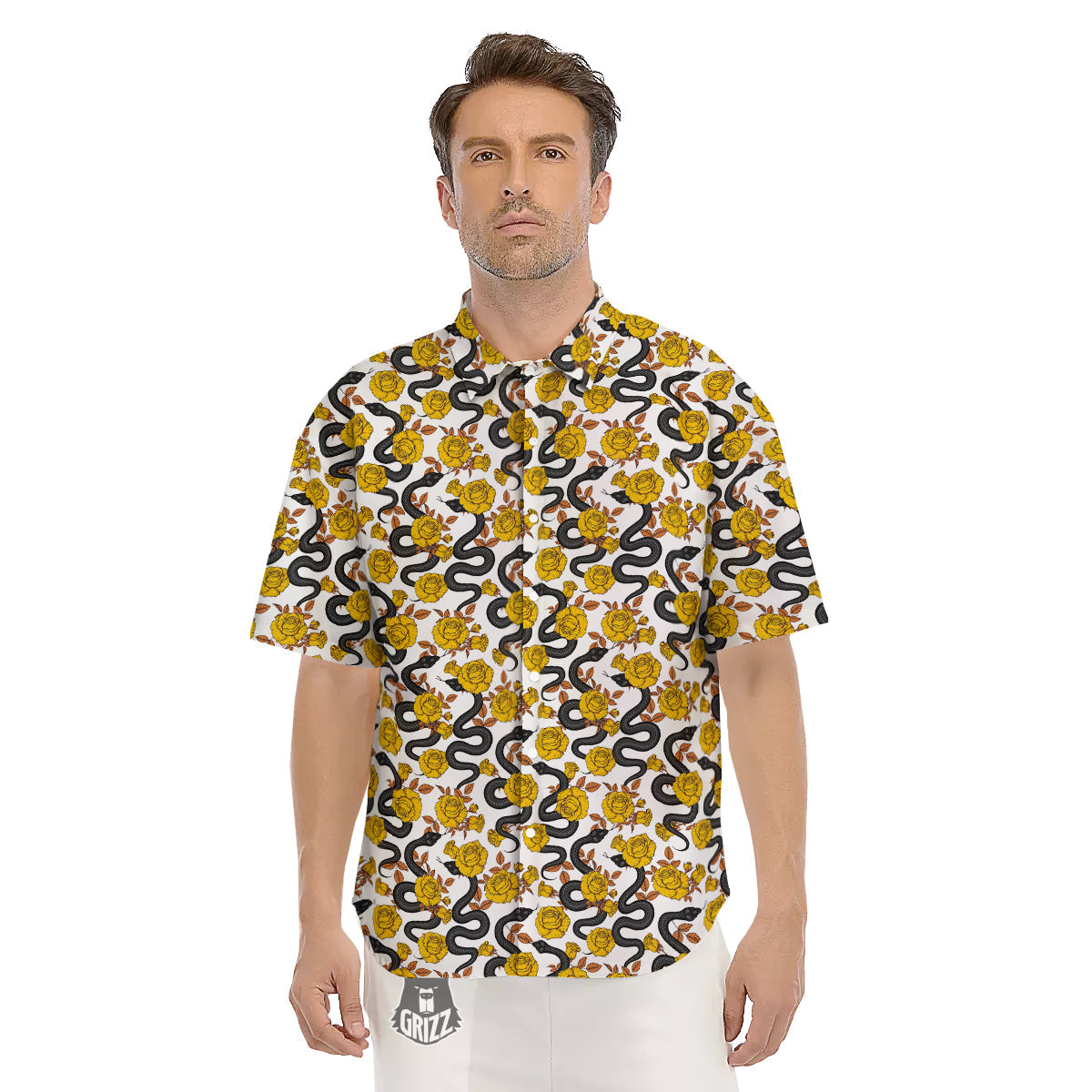 Looking for a unique Short Sleeve Shirt? Check out our Black Snake And Gold Rose Print Pattern Men's Short Sleeve Shirts at Grizzshopping. Our Short Sleeve Shirt are handcrafted to the highest quality standards that custom made for you