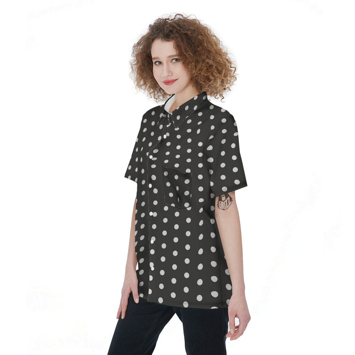 Black Tiny Polka Dot Women's Short Sleeve Shirts