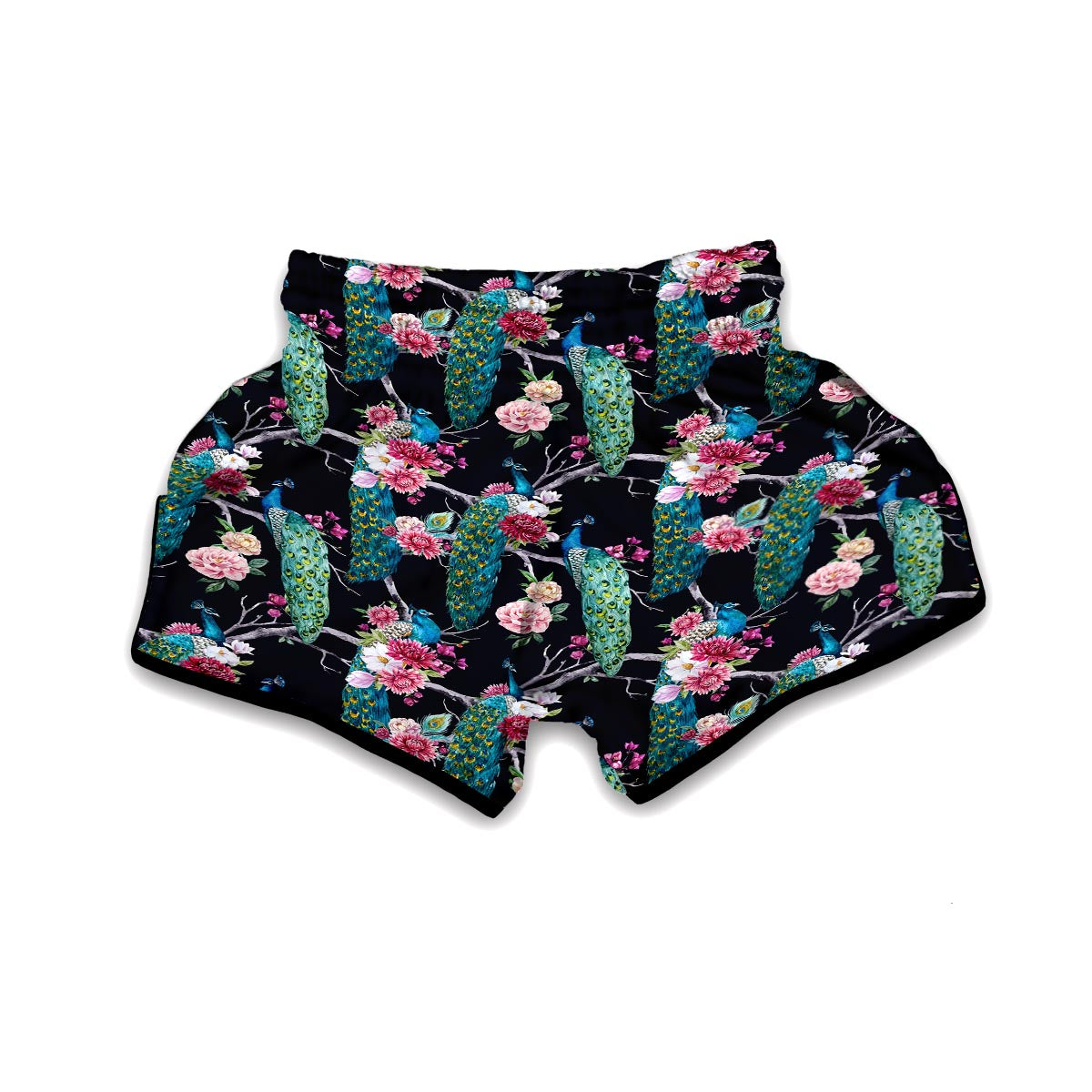 Black Tropical Peacock Muay Thai Boxing Shorts