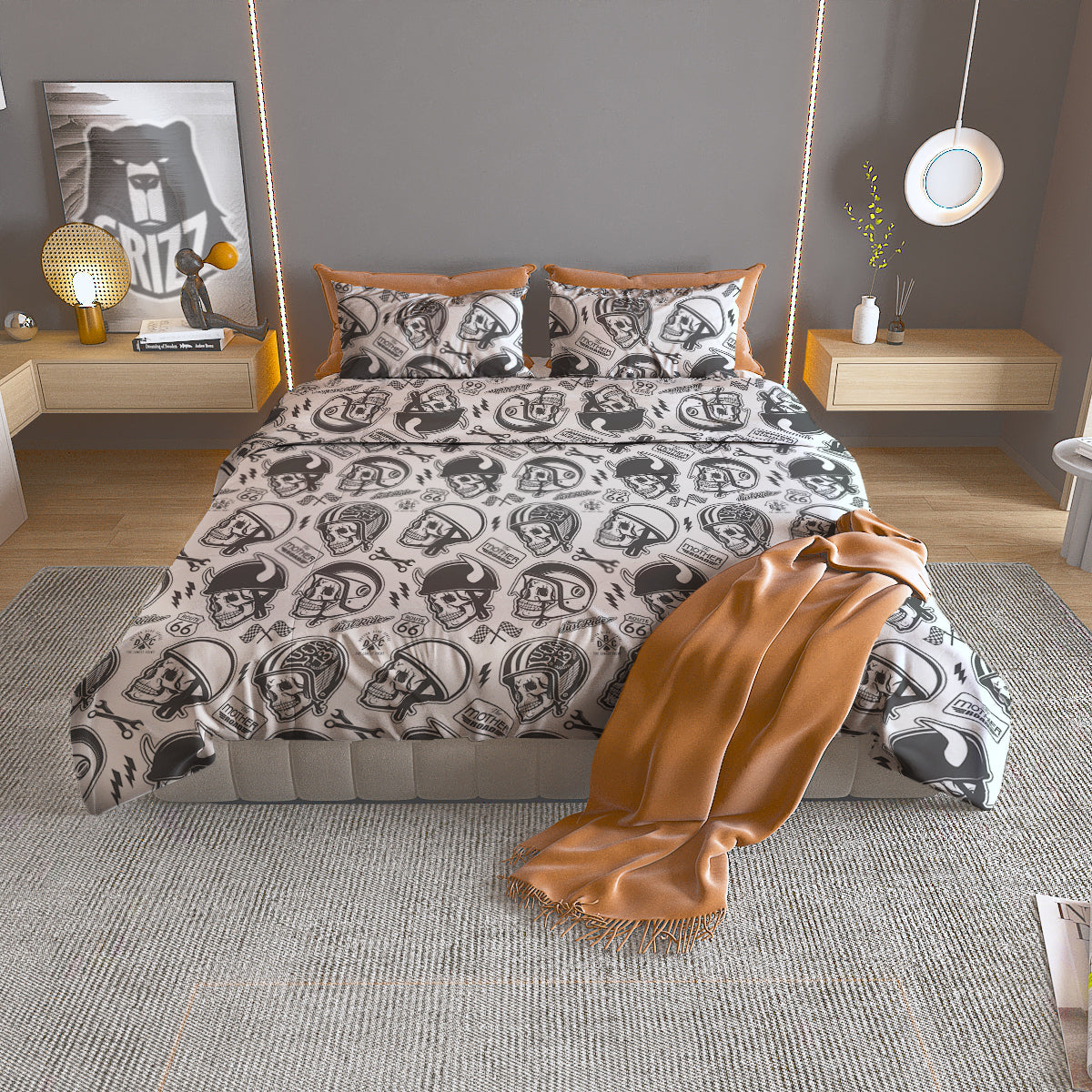Looking for a unique duvet cover? Check out our Black White Skull Helmet Rider Print Pattern Duvet Cover Bedding Set at Grizzshopping. Our duvet cover are handcrafted to the highest quality standards that custom made for you