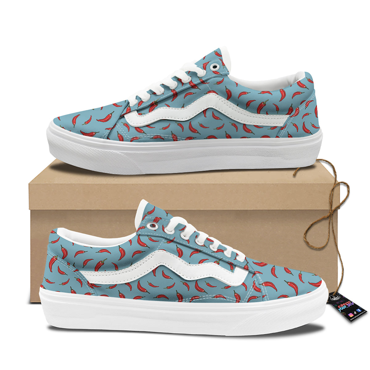 Blue And Chili Pepper Print Pattern Skate Shoes