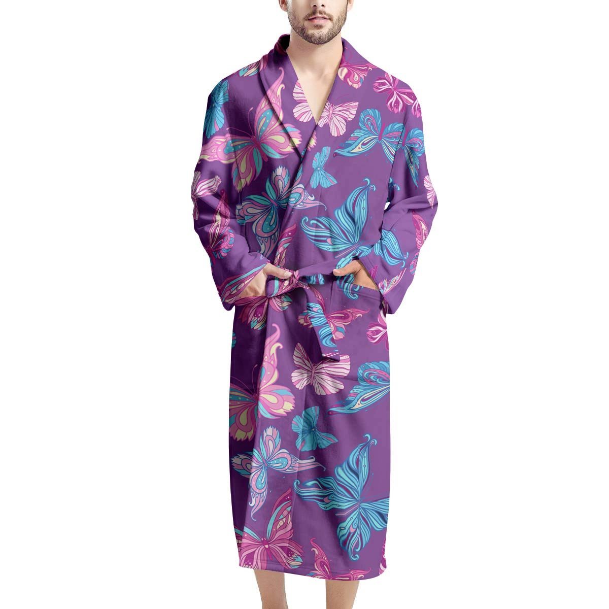 Looking for a unique robe? Check out our Blue And Pink Butterfly Print Men's Robe at Grizzshopping. Our robe are handcrafted to the highest quality standards that custom made for you