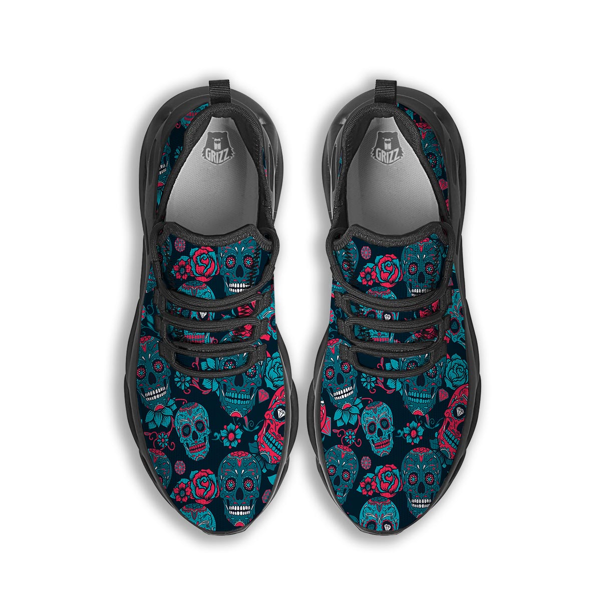 Blue And Red Floral Sugar Skull Black Running Shoes