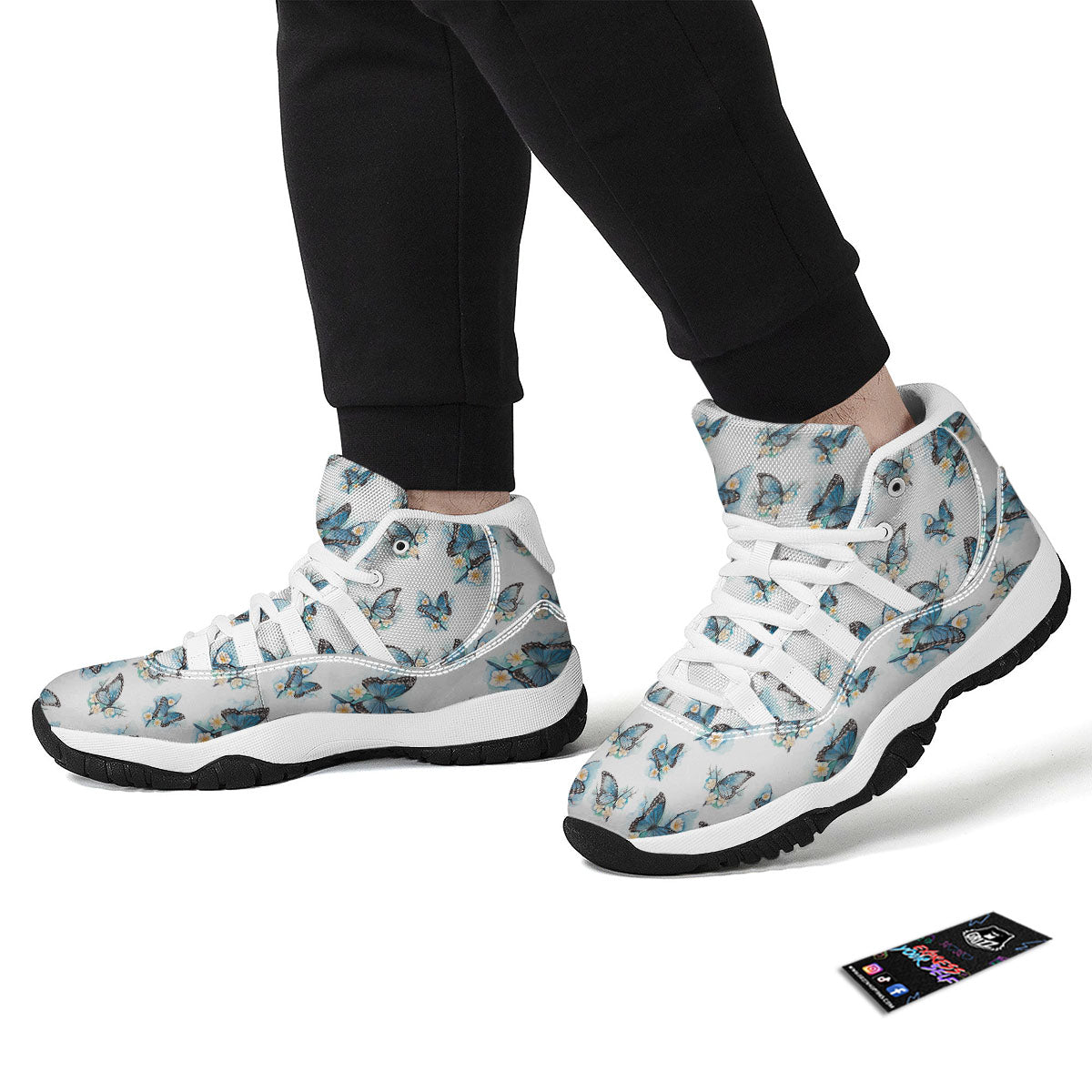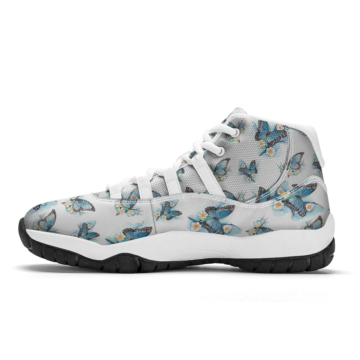 Blue Butterfly Blossom Print Pattern White Bball Shoes