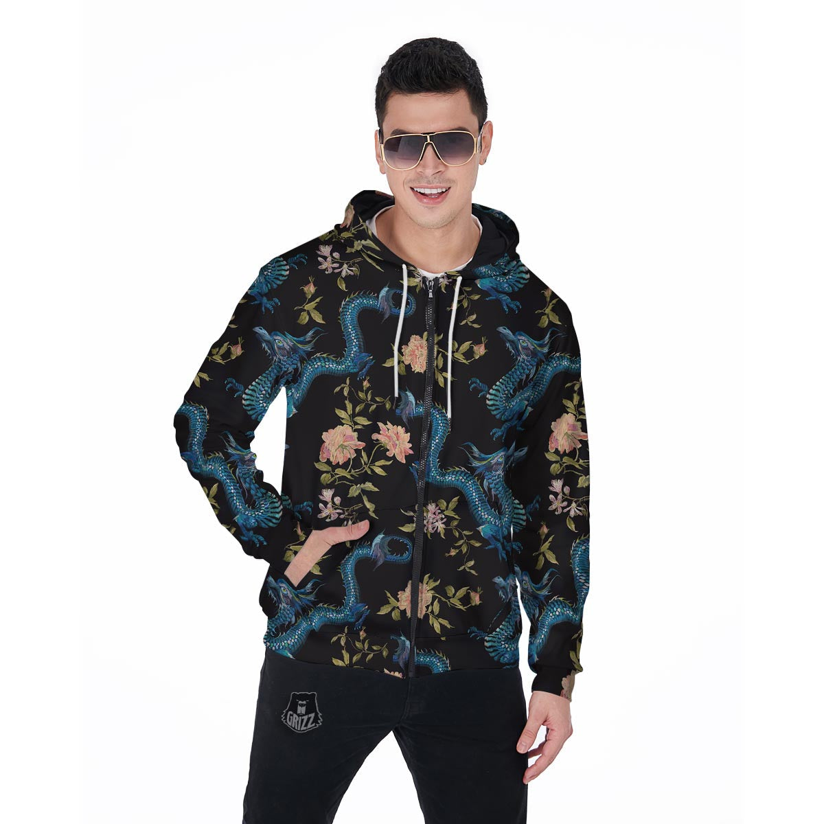Looking for a unique Zip Up Hoodie? Check out our Blue Chinese Dragon Floral Print1 Men's Zip Up Hoodie at Grizzshopping. Our Zip Up Hoodie are handcrafted to the highest quality standards that custom made for you