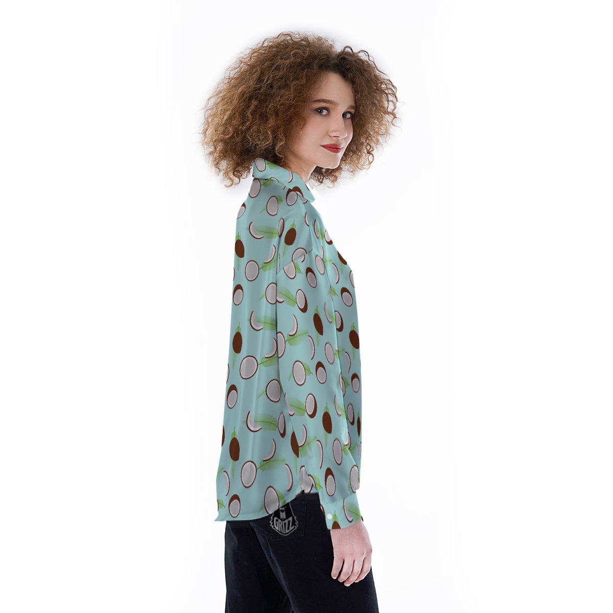 Blue Coconut Print Pattern Women's Long Sleeve Shirts