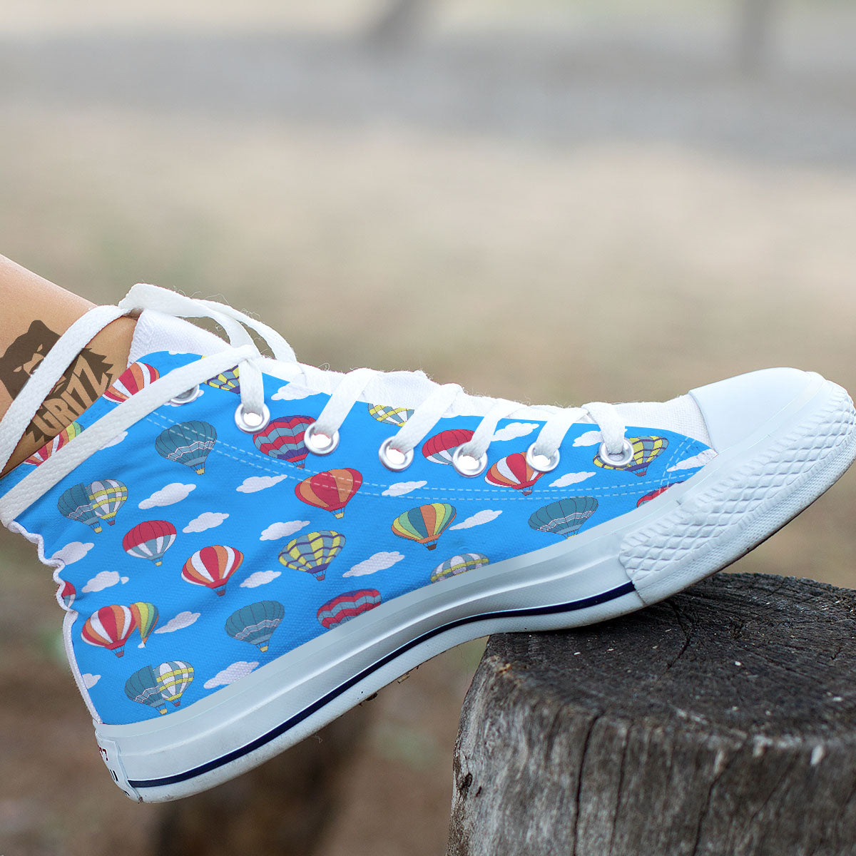 Looking for a unique shoes? Check out our Blue Hot Air Balloon Print Pattern White High Top Shoes at Grizzshopping. Our shoes are handcrafted to the highest quality standards that custom made for you