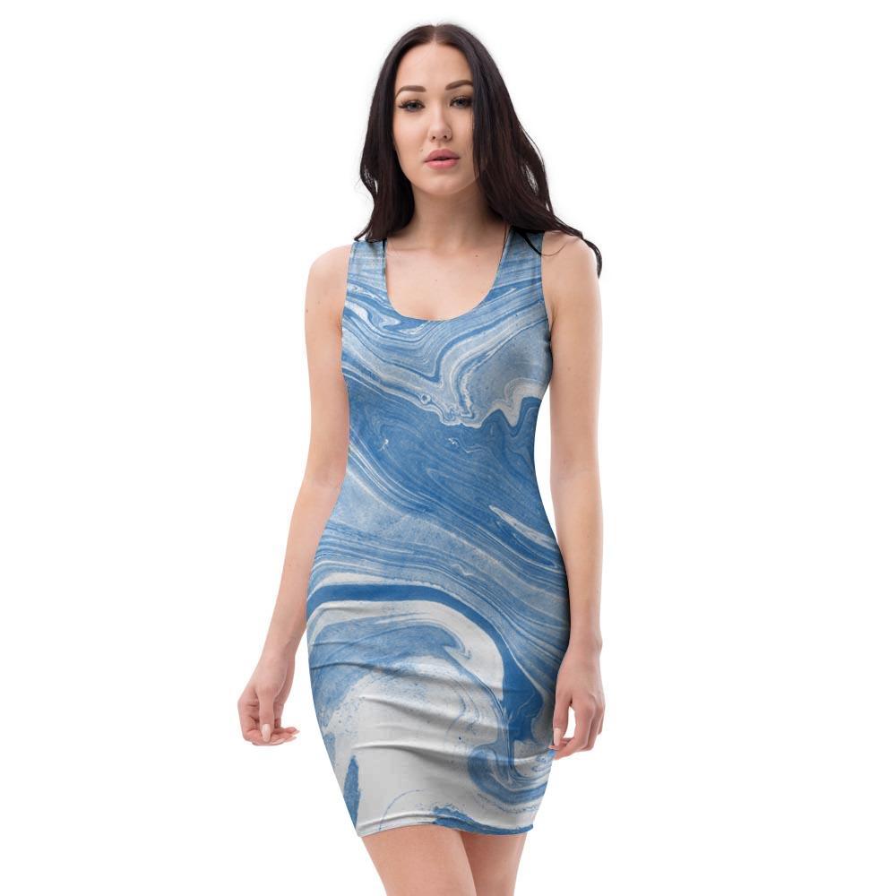 Looking for a unique bodycon dress? Check out our Blue Liquid Marble Bodycon Dress at Grizzshopping. Our bodycon dress are handcrafted to the highest quality standards that custom made for you