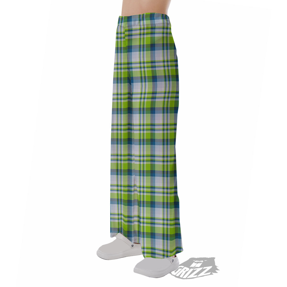 Blue Madras Plaid And Lime Print Pattern Pajama Pants