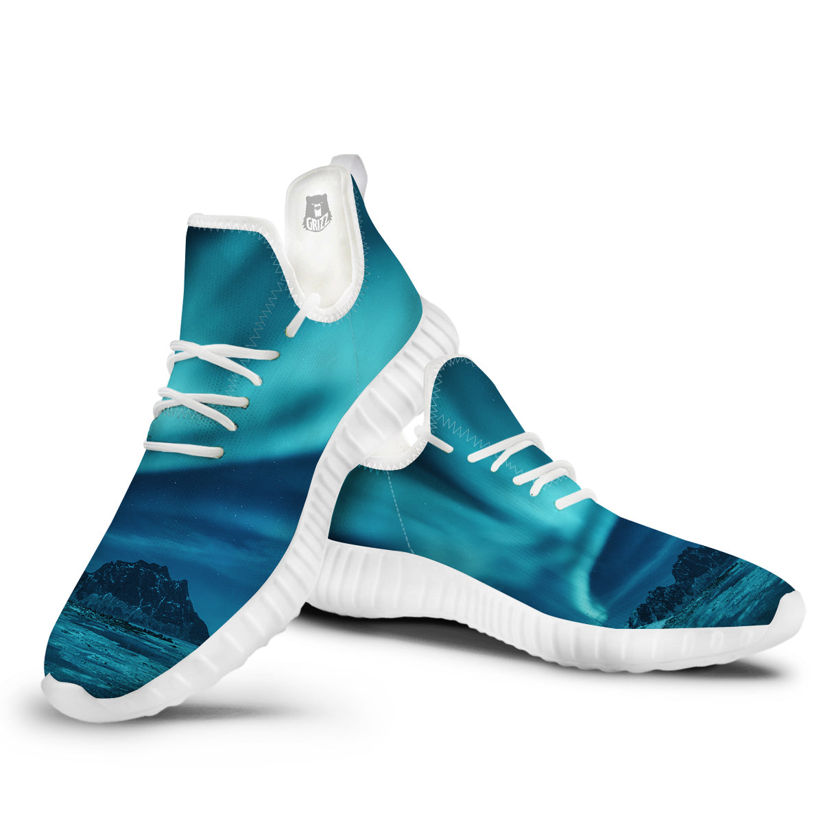 Looking for unique walking shoes? Check out our Blue Northern Lights And Mountain Print White Walking Shoes at Grizzshopping. Our walking shoes are handcrafted to the highest quality standards and custom-made for you