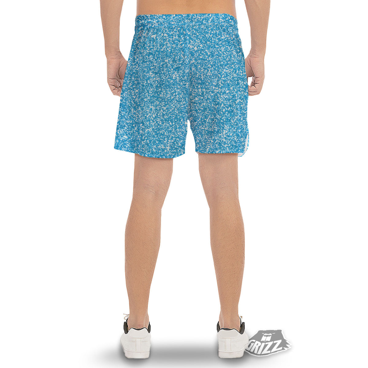 Blue Ocean Glitter Texture Print Men's Gym Shorts