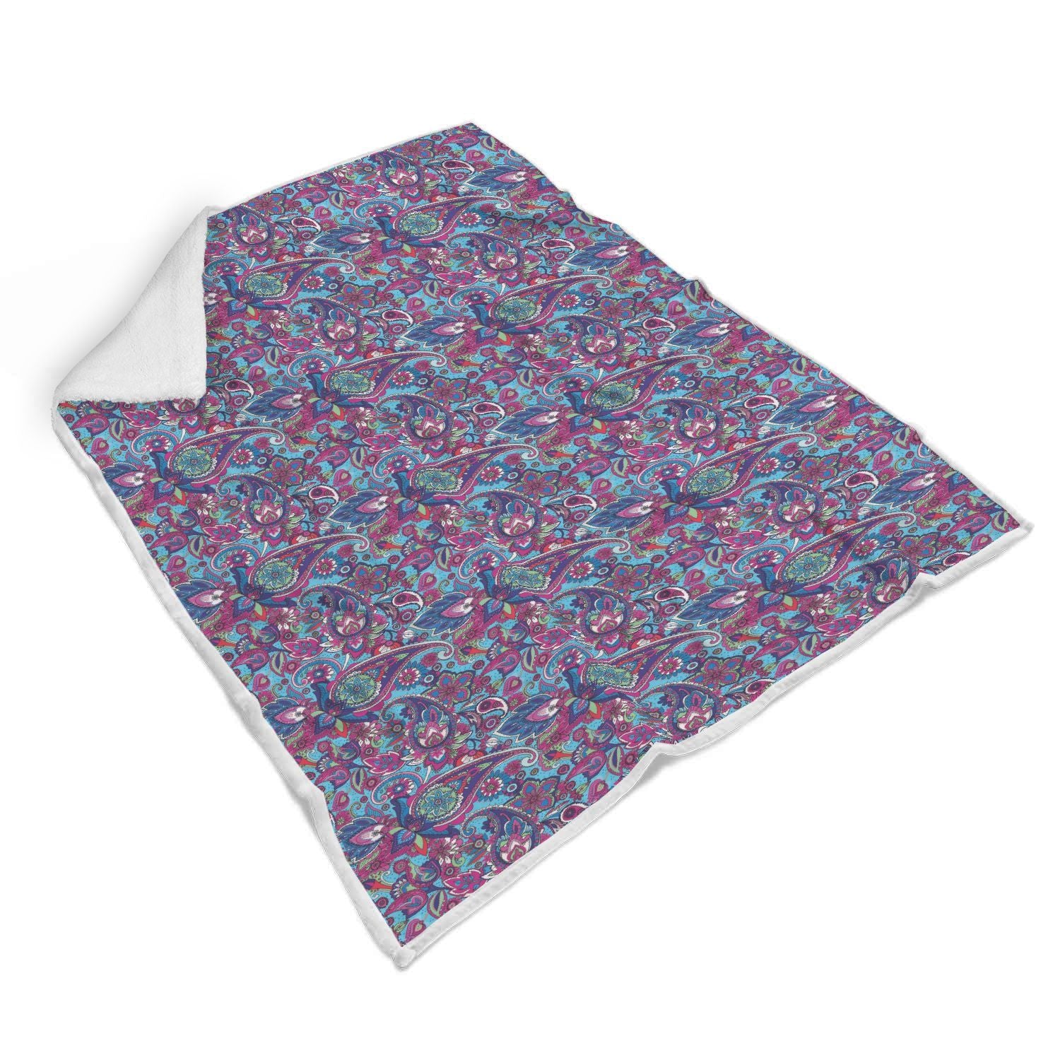 Blue Purple Red Paisley Pattern Print Throw Blanket