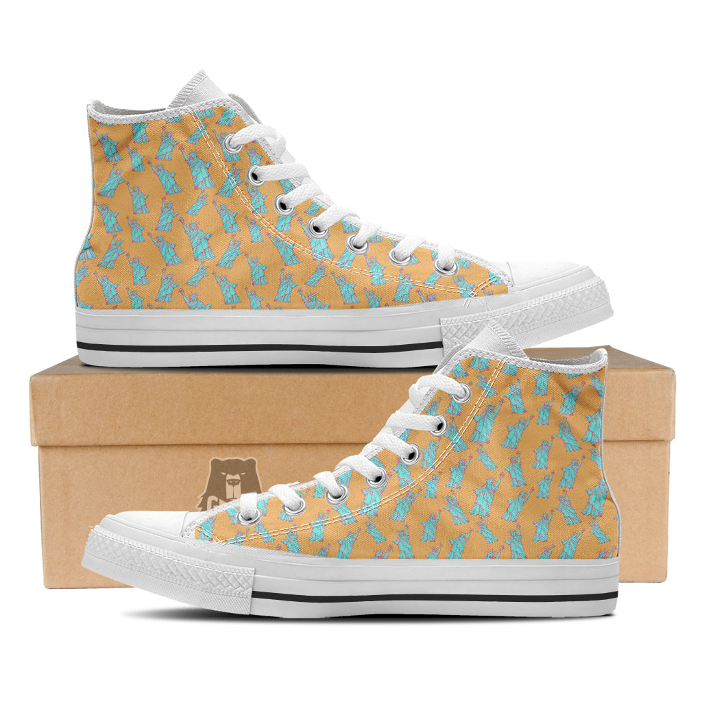 Looking for a unique shoes? Check out our Blue Statue Of Liberty Print Pattern White High Top Shoes at Grizzshopping. Our shoes are handcrafted to the highest quality standards that custom made for you