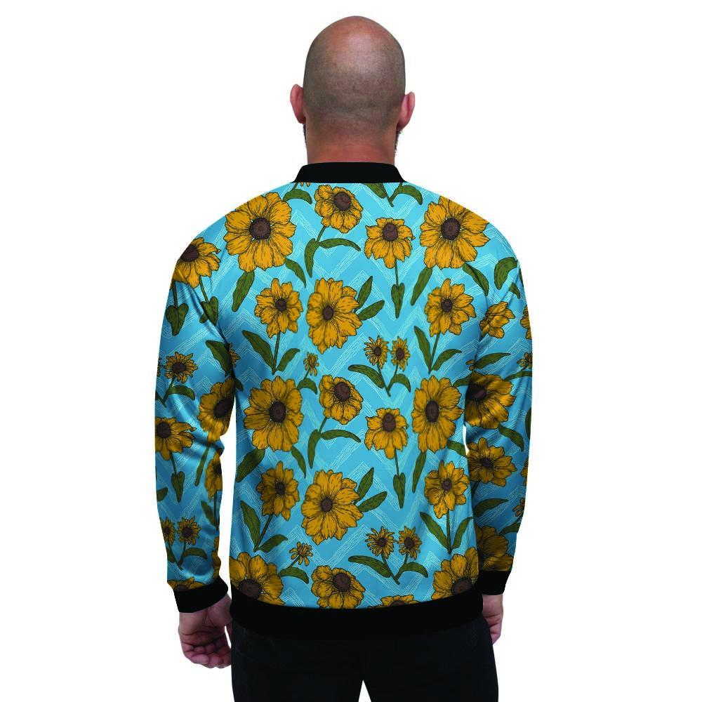 Blue Zigzag Sunflower Men's Bomber Jacket