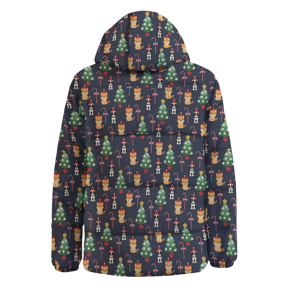 Boston Terrier And Corgi Christmas Print Down Jacket