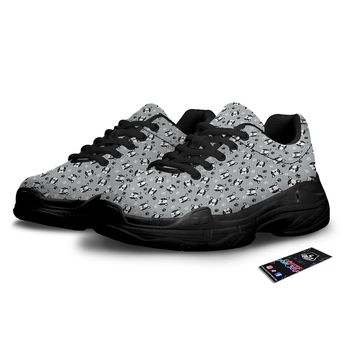 Boston Terrier Faces Cute Print Black Chunky Shoes