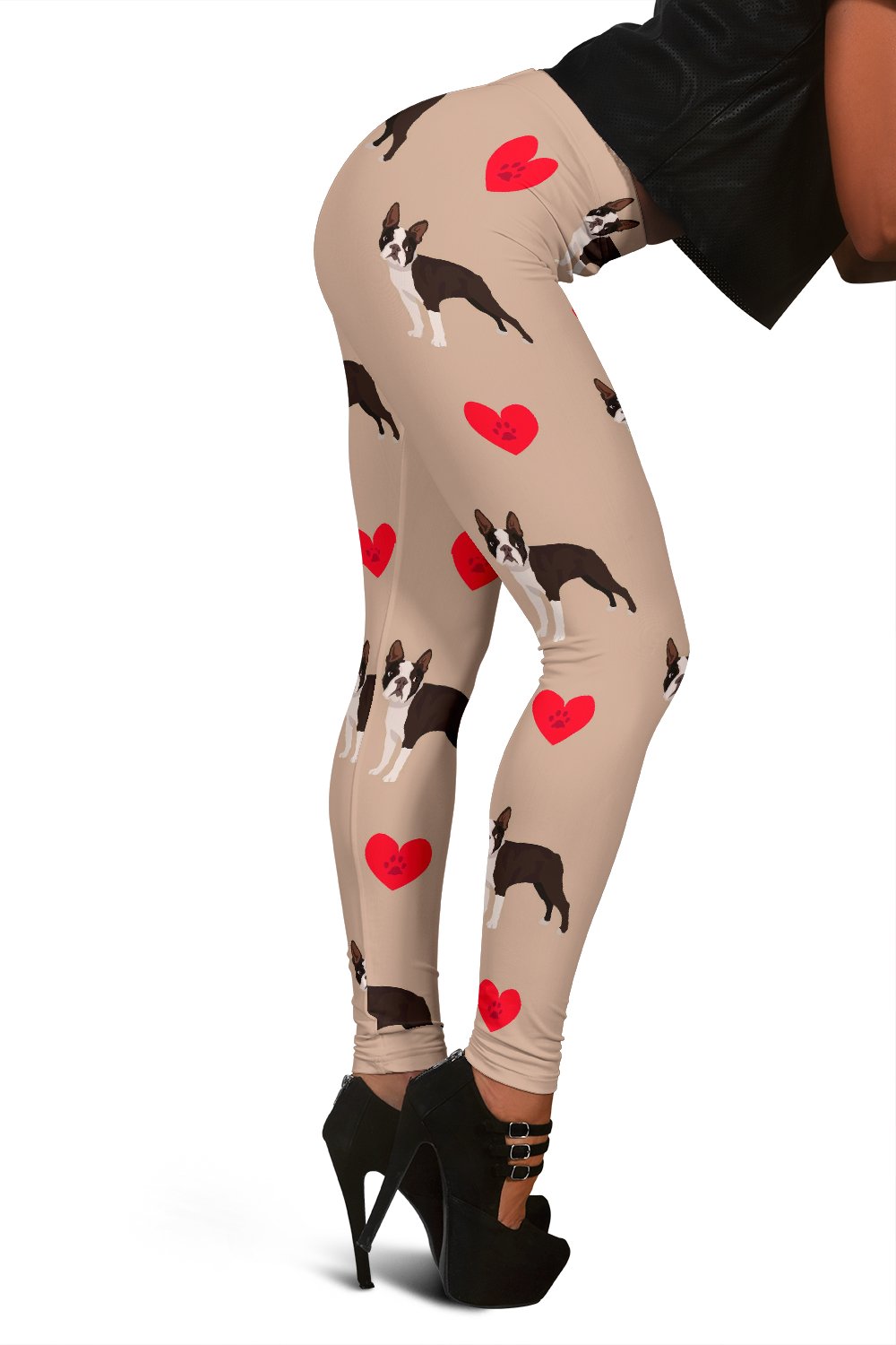 Boston Terrier Heart Paw Pattern Print Women Leggings