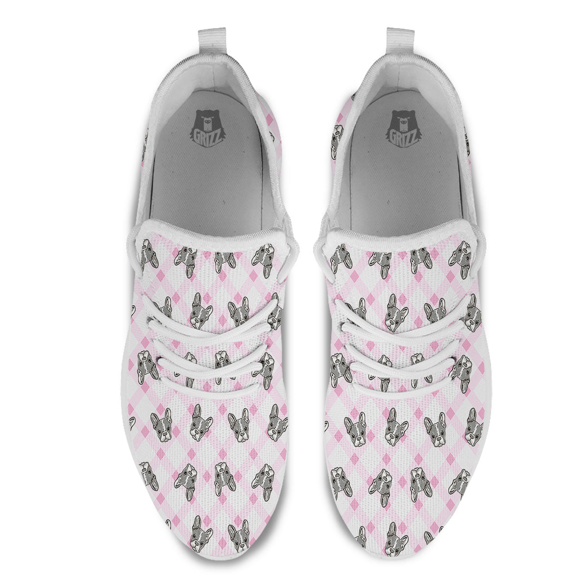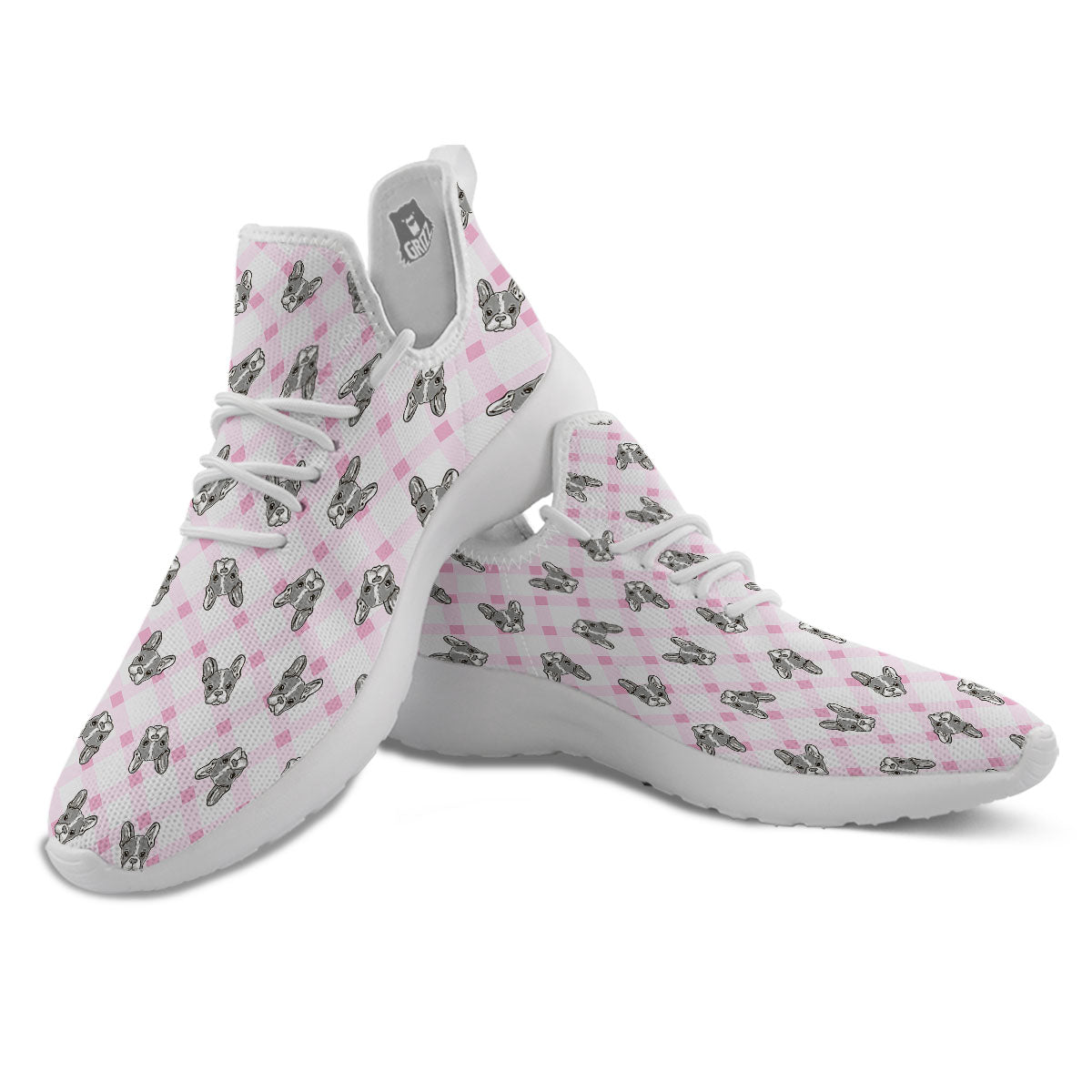 Boston Terrier Pink Plaid Print Pattern White Athletic Shoes