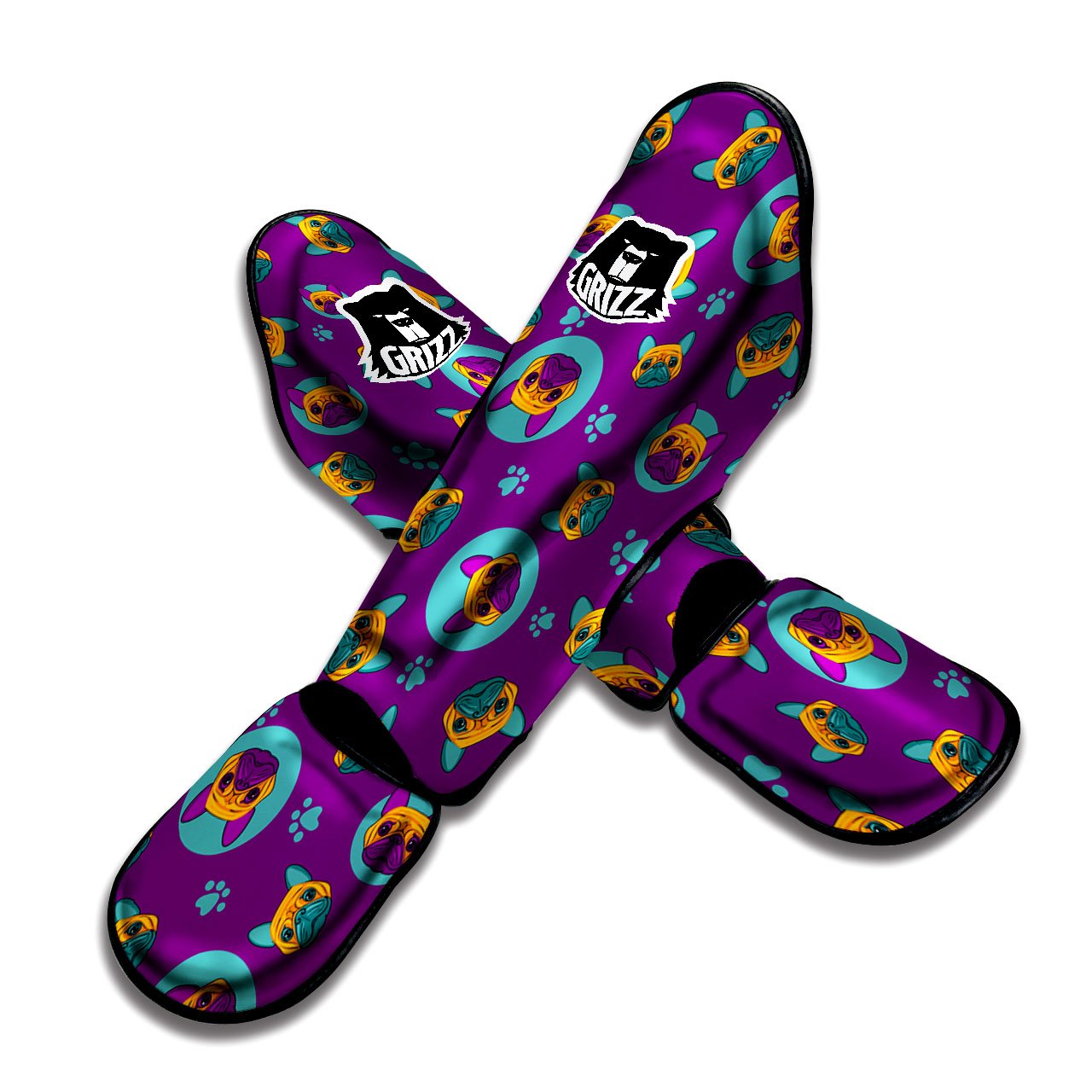 Boston Terrier Purple Print Pattern Muay Thai Shin Guards