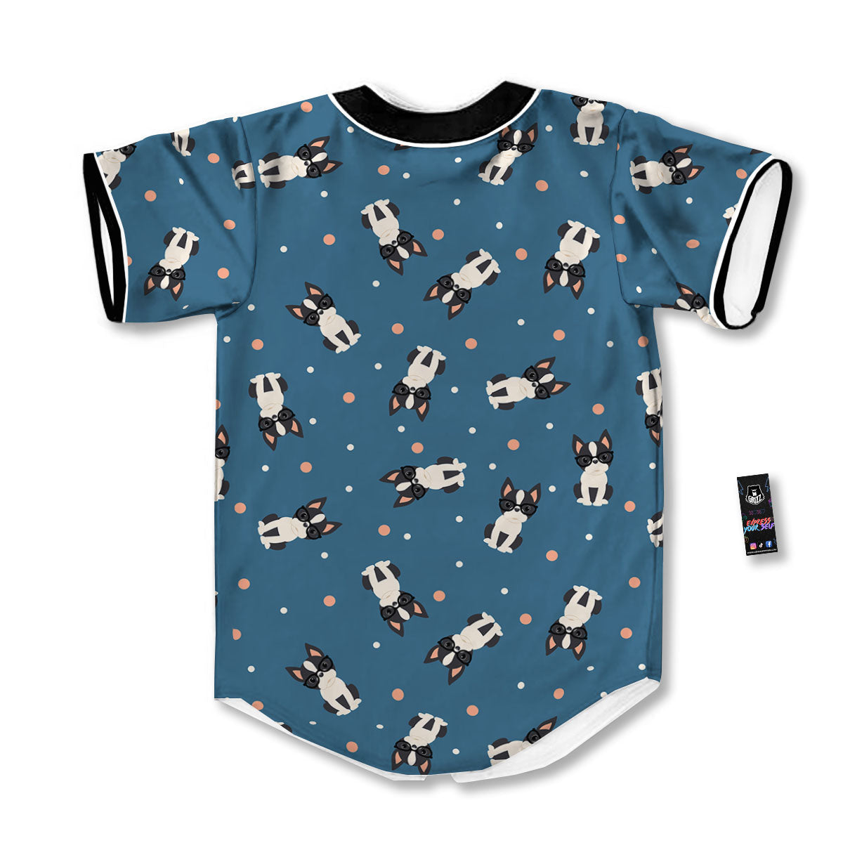 Boston Terrier Wearing Glasses Print Baseball Jersey