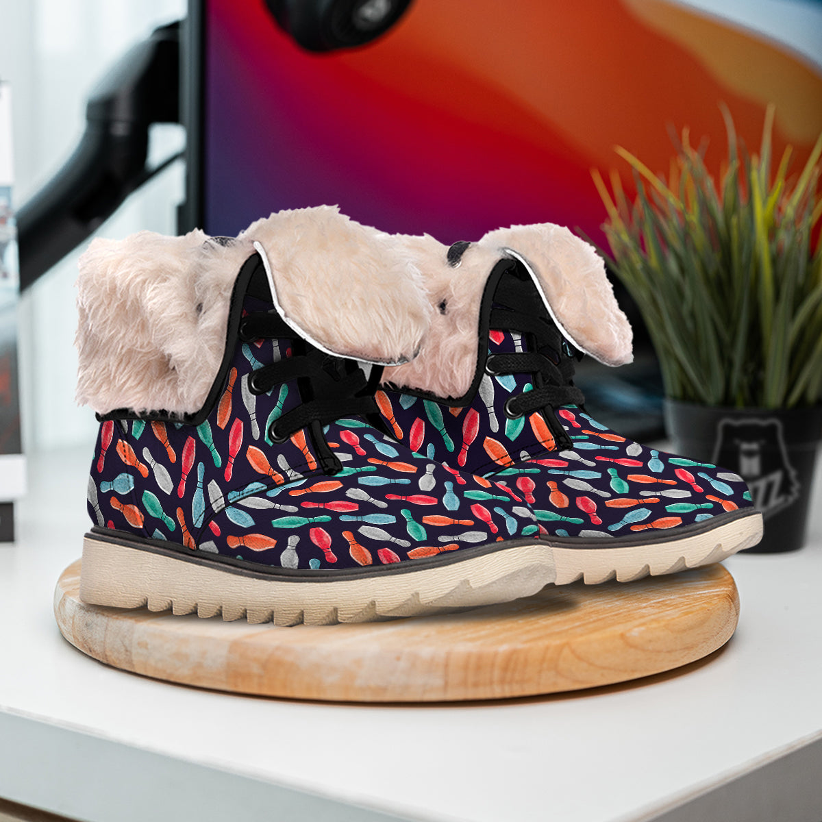Bowling Pins Watercolor Print Pattern Snow Boots