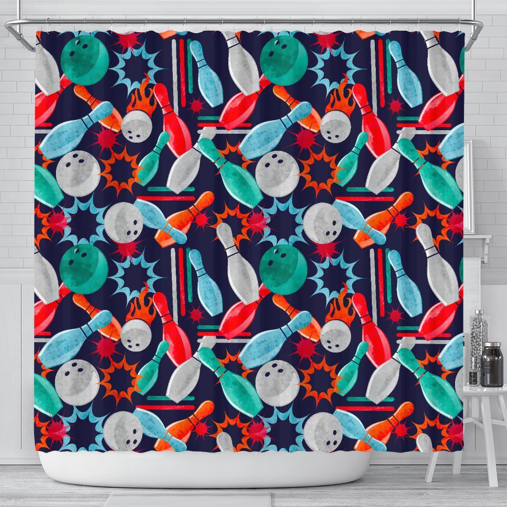 Bowling Stike Pattern Print Bathroom Shower Curtain