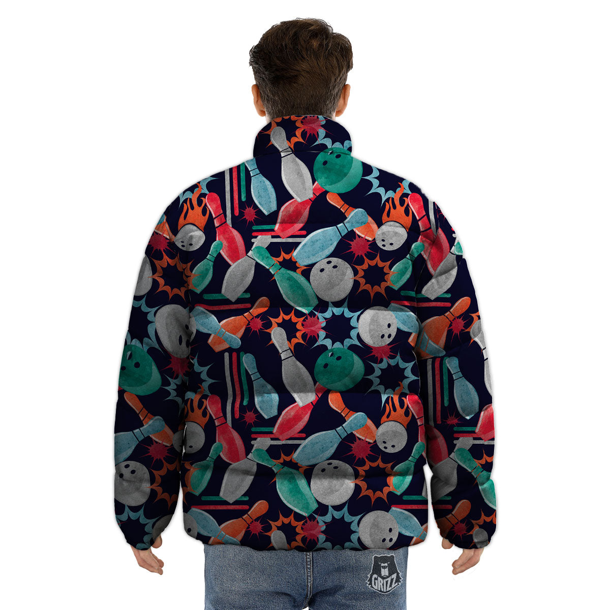 Bowling Theme Watercolor Print Pattern Puffer Jacket