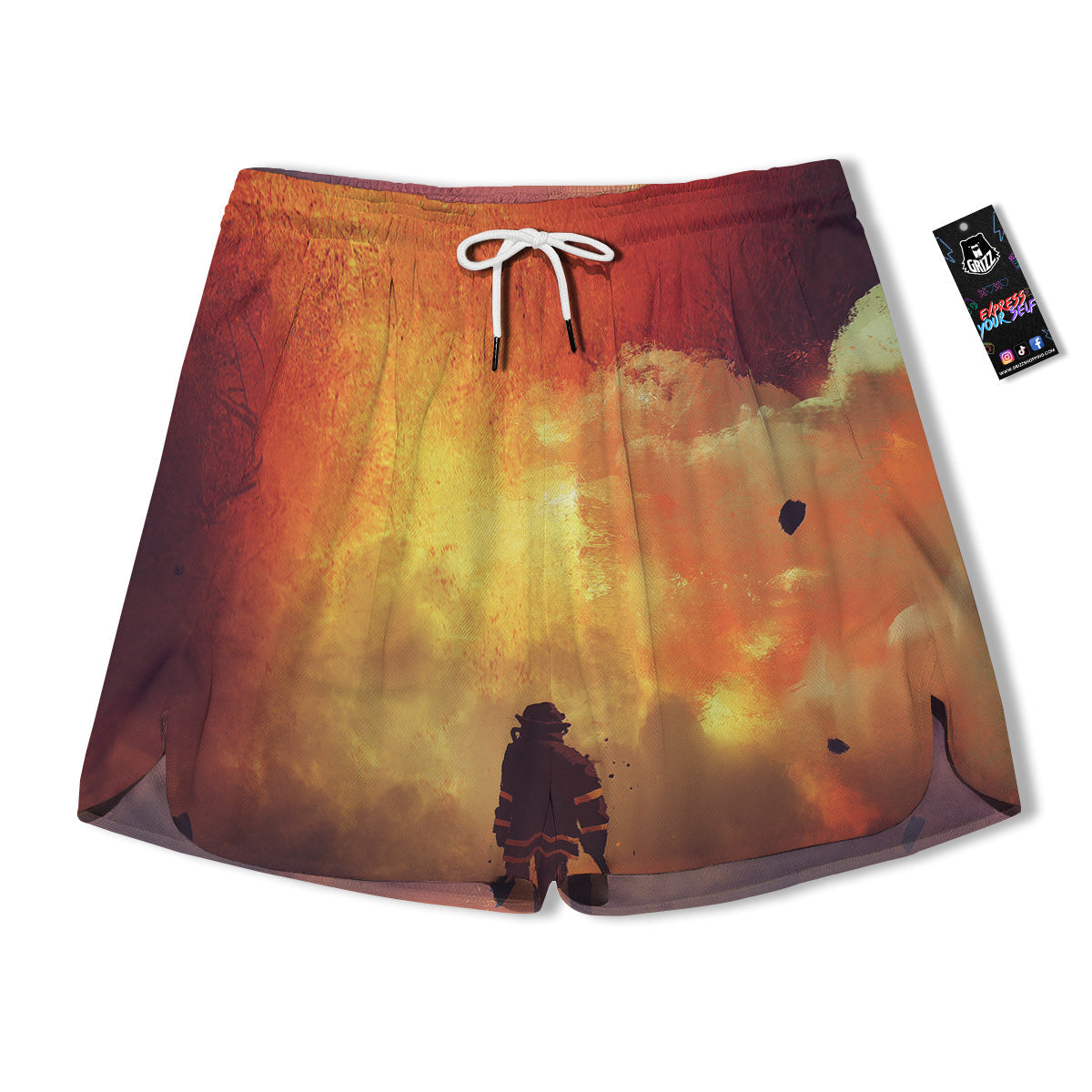 Brave Firefighter In The Fire Print Men's Running Shorts