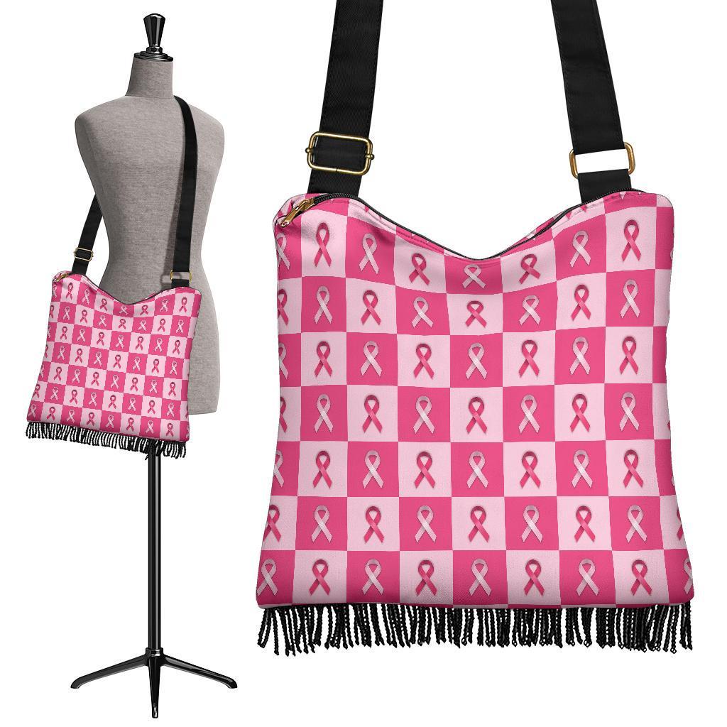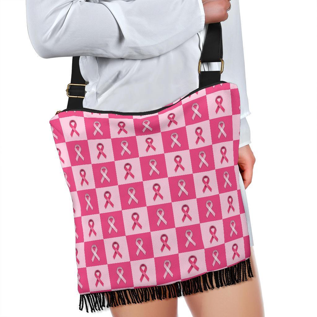 Breast Cancer Awareness Pink Ribbon Pattern Print Crossbody Bags