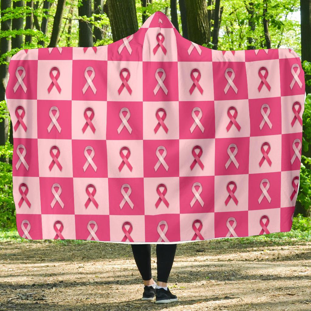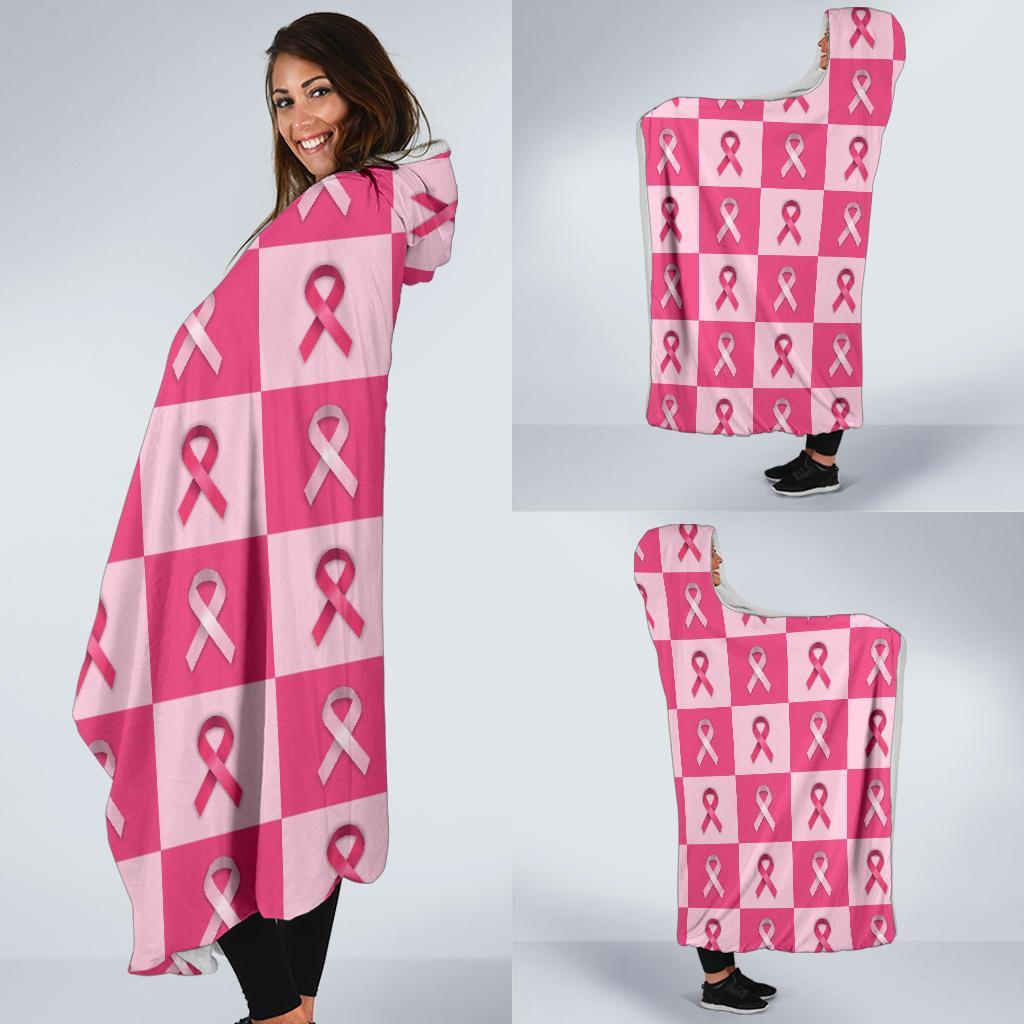 Breast Cancer Awareness Pink Ribbon Pattern Print Hooded Blanket