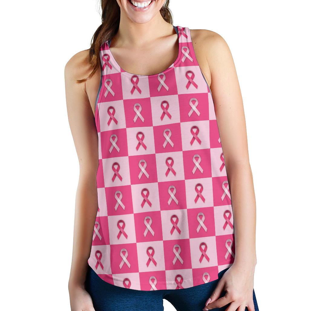 Breast Cancer Awareness Pink Ribbon Pattern Print Racerback Tank Tops