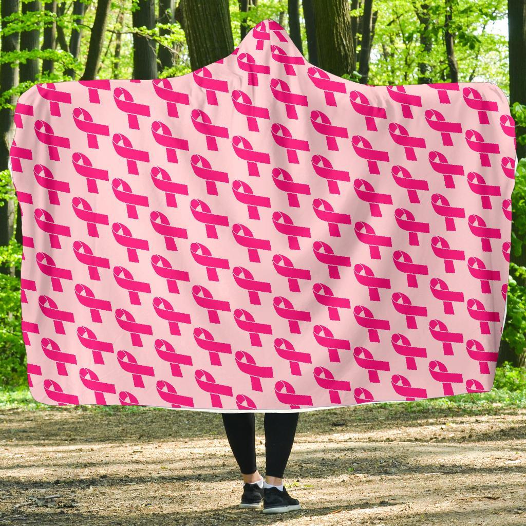 Breast Cancer Awareness Pink Ribbon Print Pattern Hooded Blanket