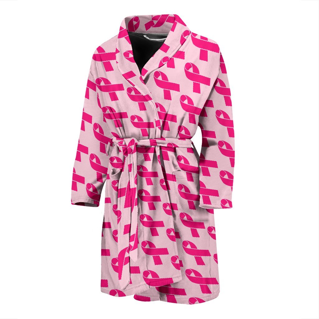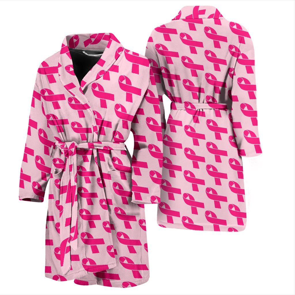 Breast Cancer Awareness Pink Ribbon Print Pattern Men Long Robe
