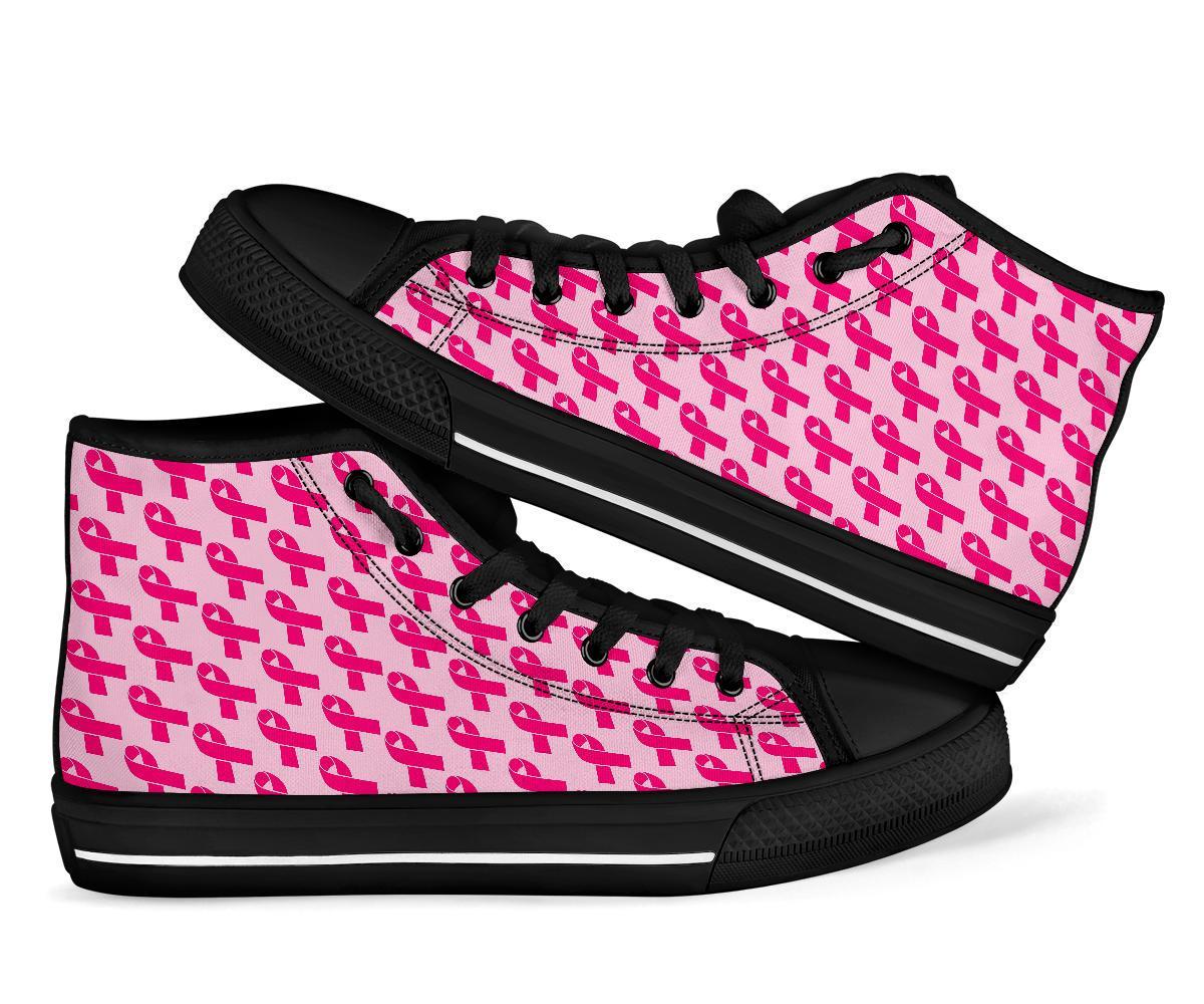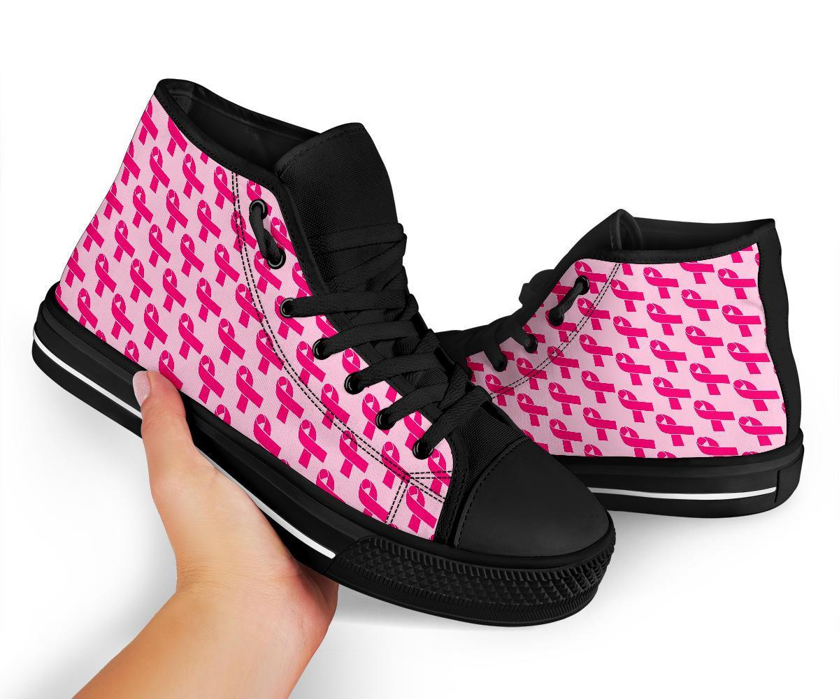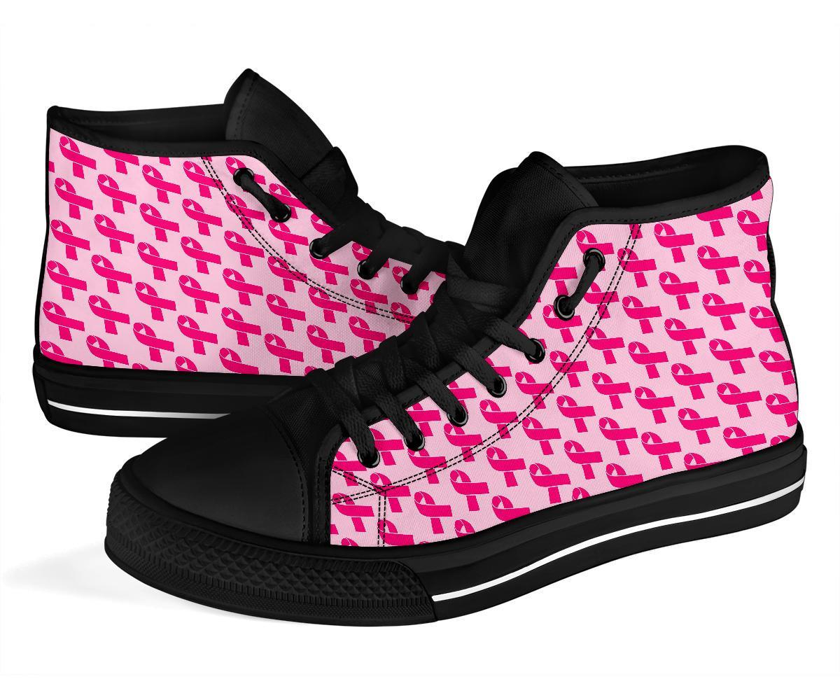 Breast Cancer Awareness Pink Ribbon Print Pattern Men Women's High Top Shoes