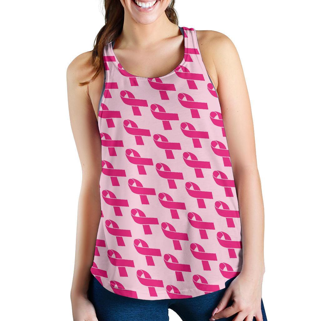 Breast Cancer Awareness Pink Ribbon Print Pattern Racerback Tank Tops