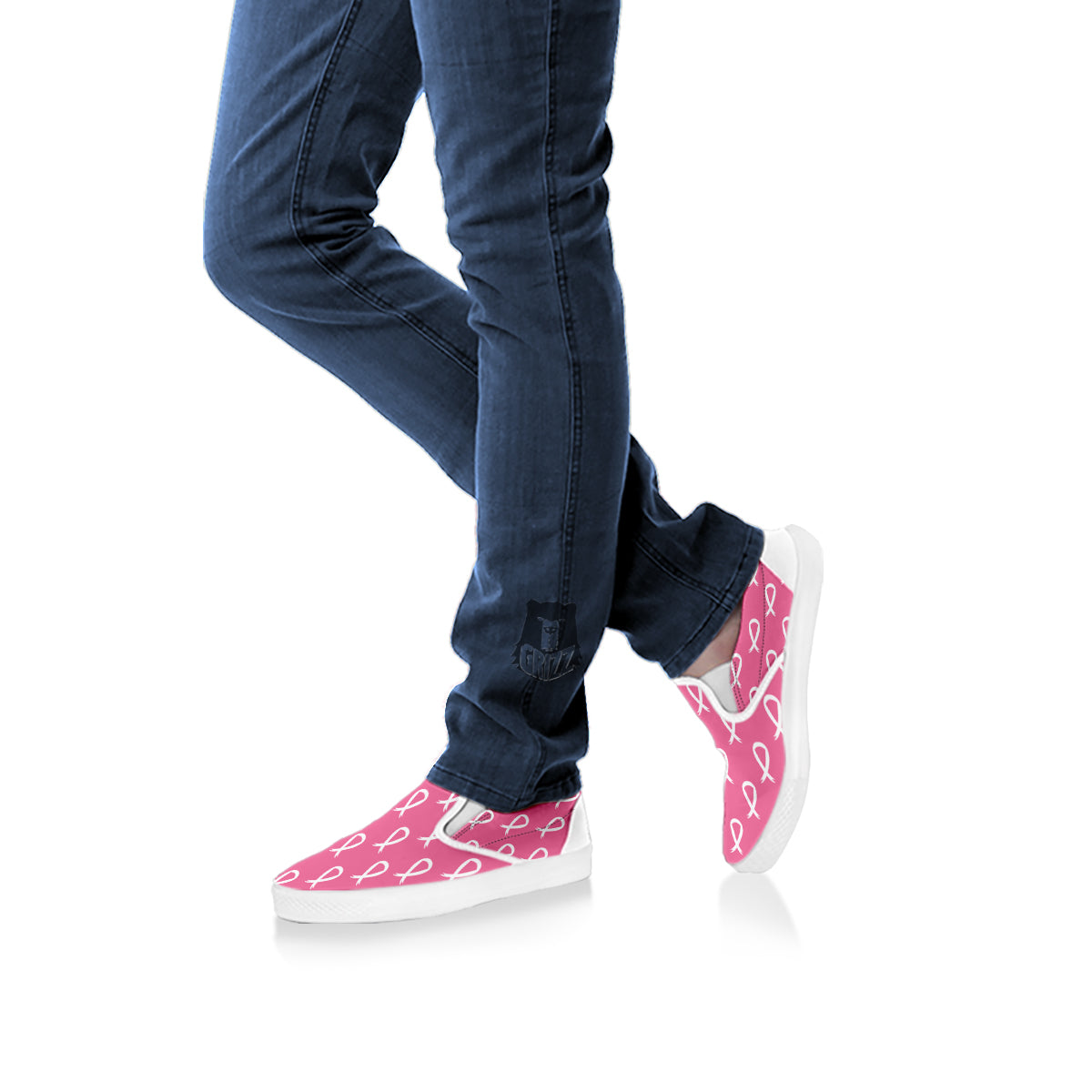 Breast Cancer Pink And White Print Pattern White Slip On Shoes