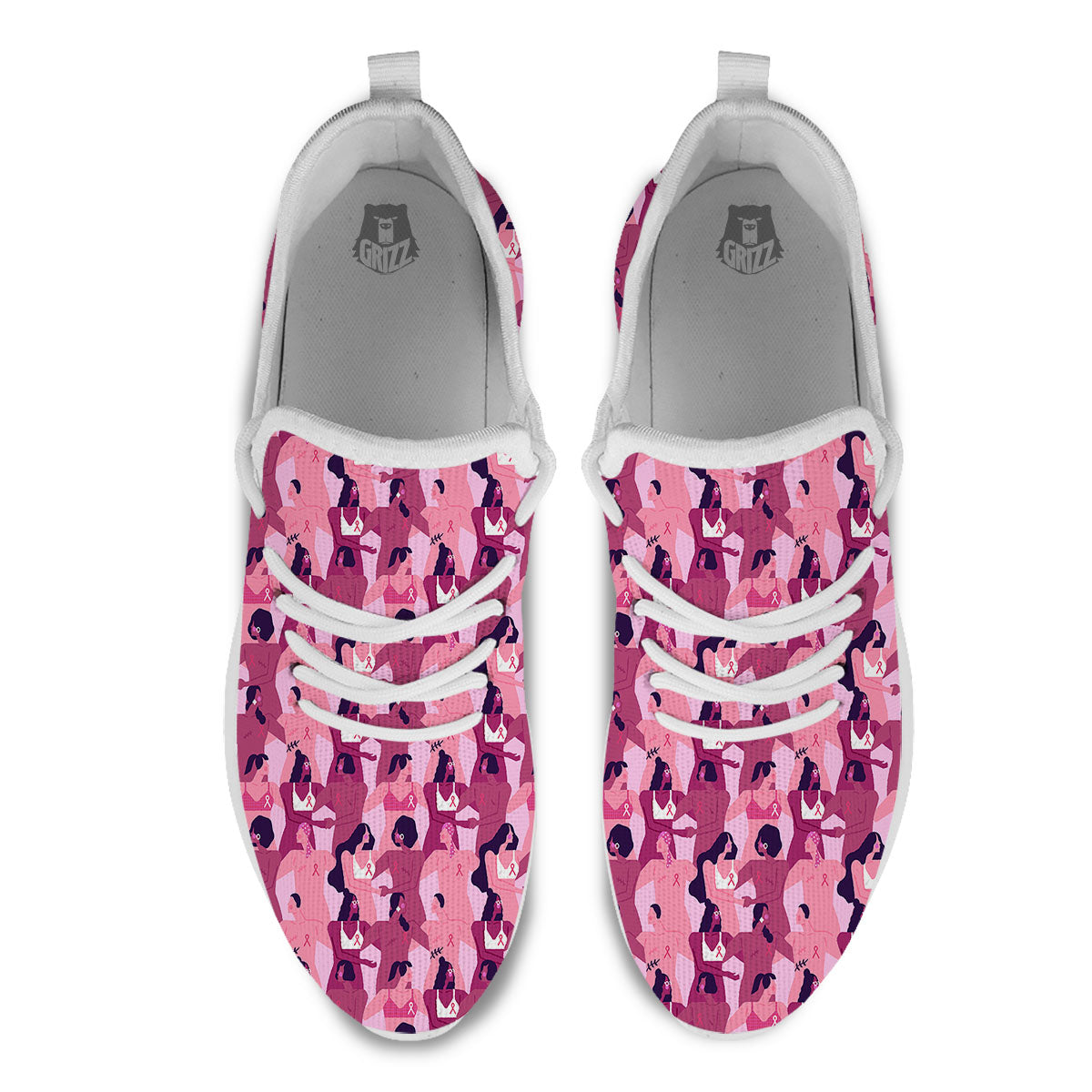 Breast Cancer Pink Print Pattern White Athletic Shoes