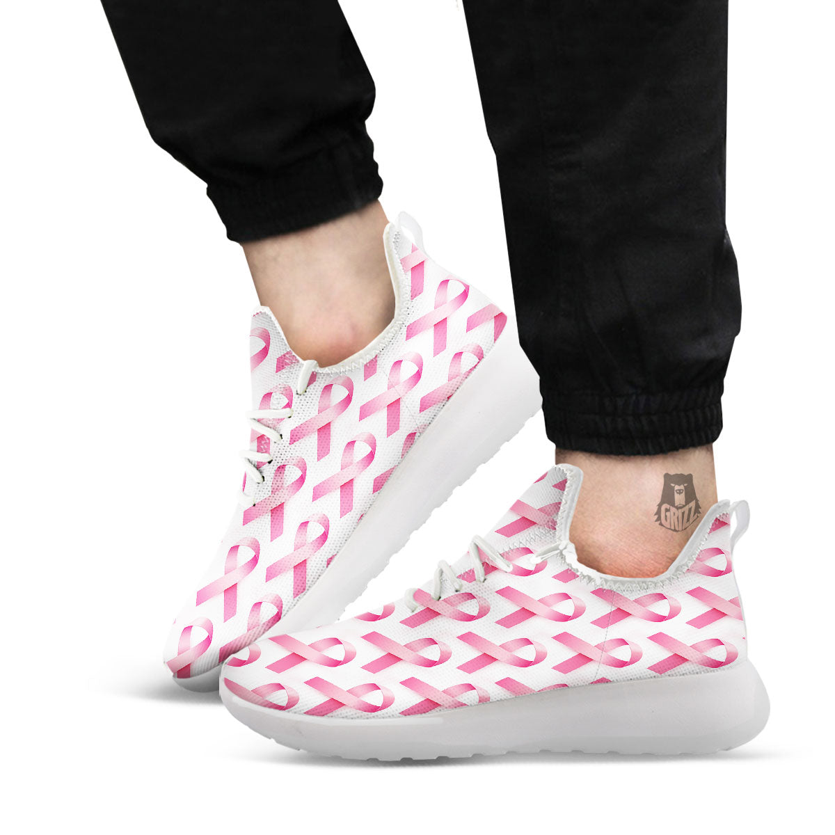 Breast Cancer Pink Ribbon Print Pattern White Athletic Shoes