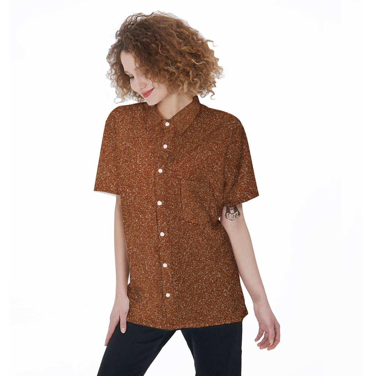 Bronze Glitter Texture Print Women's Short Sleeve Shirts