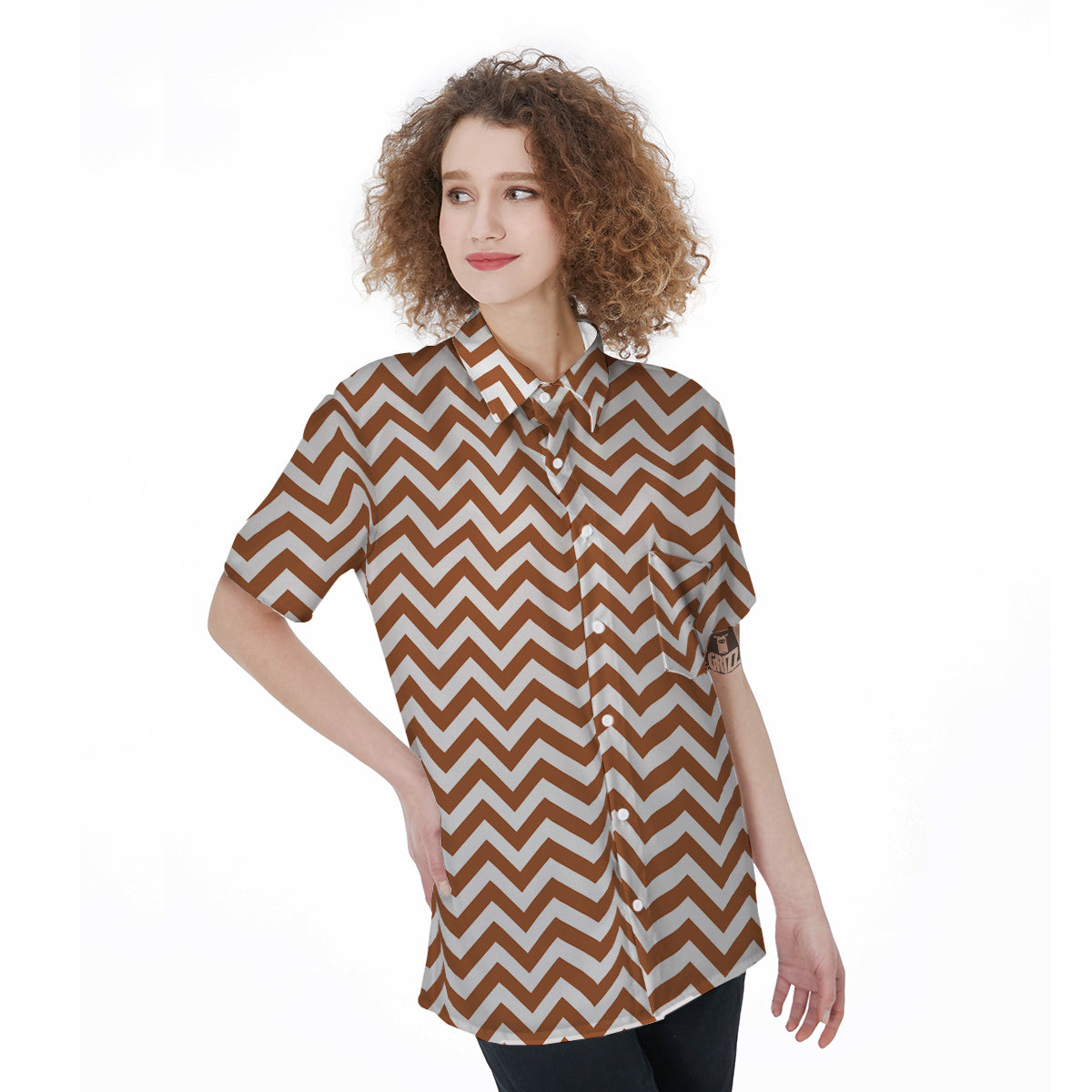 Bronze Zigzag Print Pattern Women's Short Sleeve Shirts