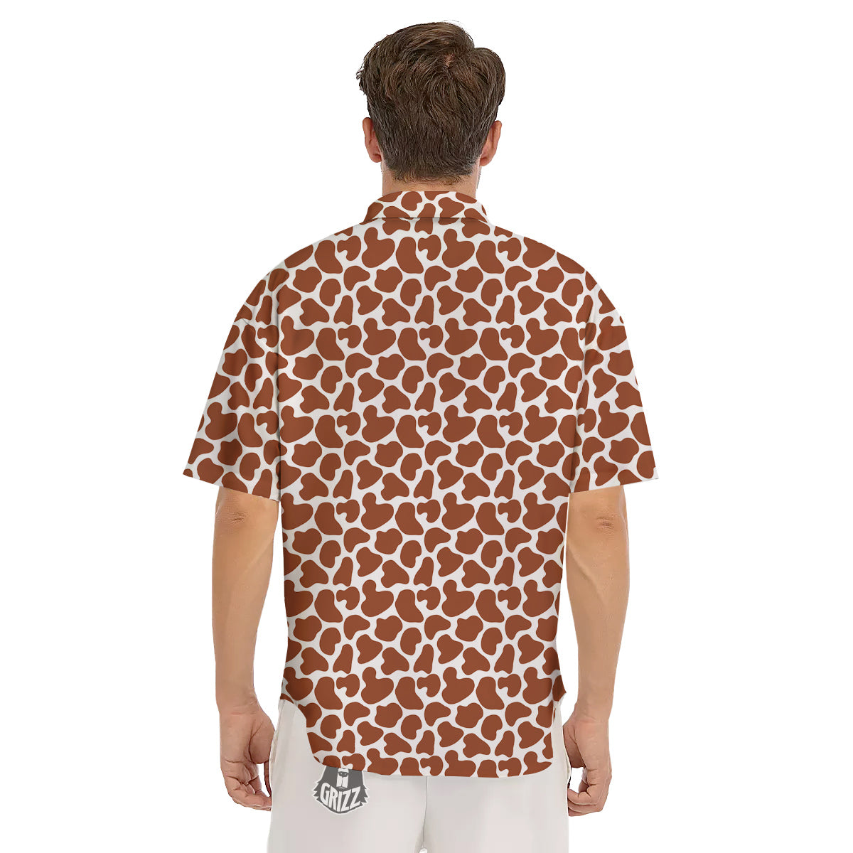 Brown Chocolate And White Cow Print Men's Short Sleeve Shirts