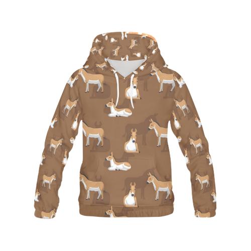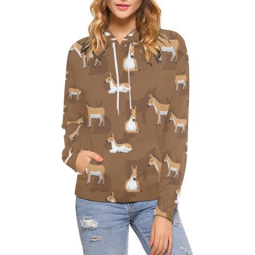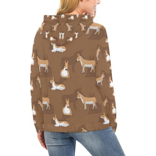 Brown Donkey Pattern Print Women Pullover Hoodie