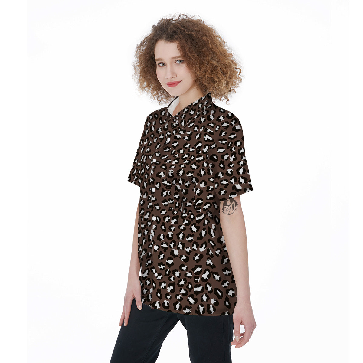 Brown Leopard Print Pattern Women's Short Sleeve Shirts