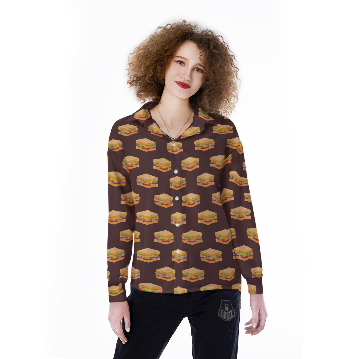 Looking for a unique Women' Long Sleeve Shirt? Check out our Brown Sandwich Print Pattern Women's Long Sleeve Shirts at Grizzshopping. Our Women's Long Sleeve Shirt are handcrafted to the highest quality standards that custom made for you